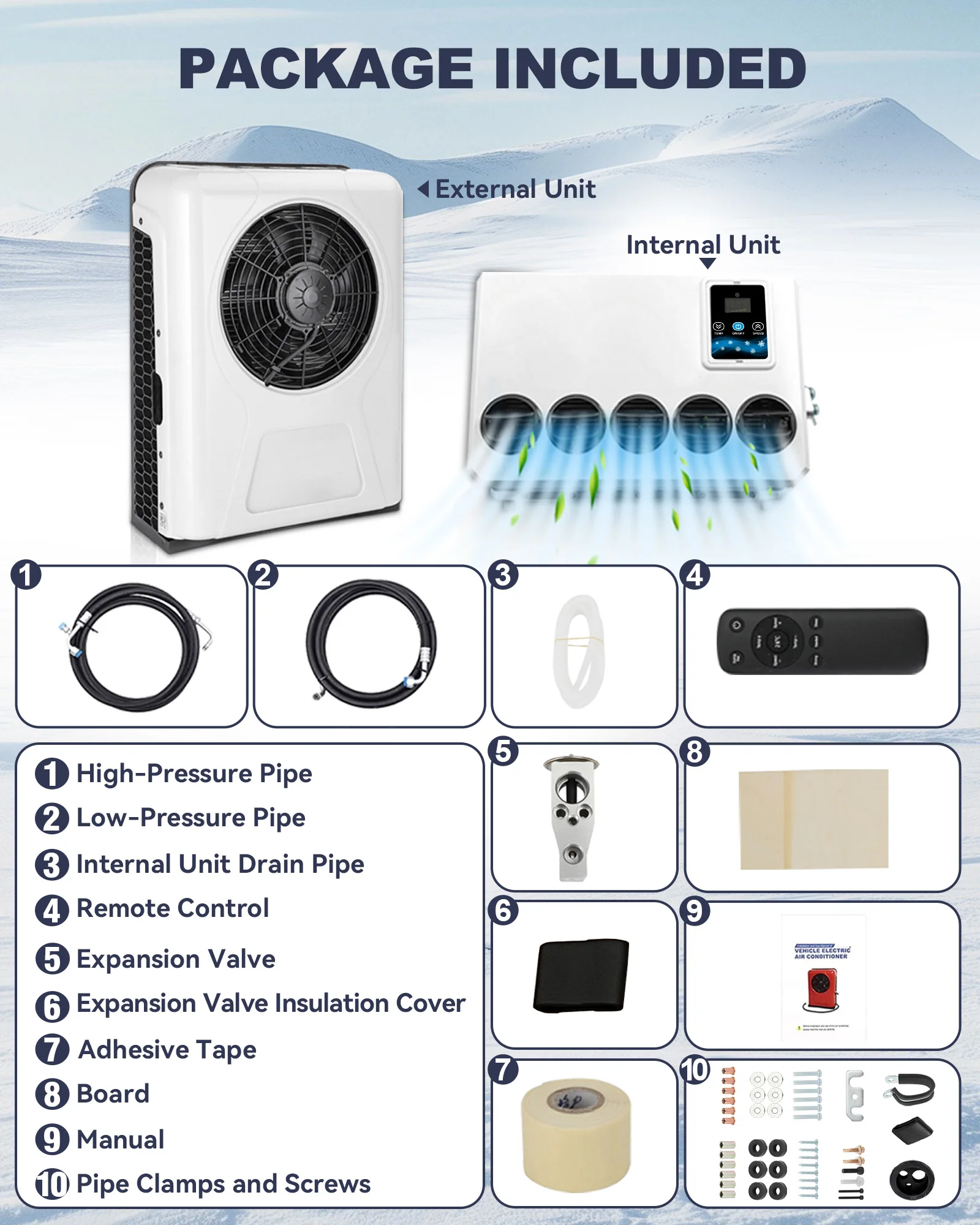 The parking air conditioner is a kind of in-car air conditioner. It refers to the equipment that uses the on-board battery DC power supply (12V) to make the air conditioner run continuously when parking and waiting and resting, and to adjust and control the temperature, humidity, flow rate and other parameters of the ambient air in the car, so as to fully meet the comfort cooling needs of the truck driver.