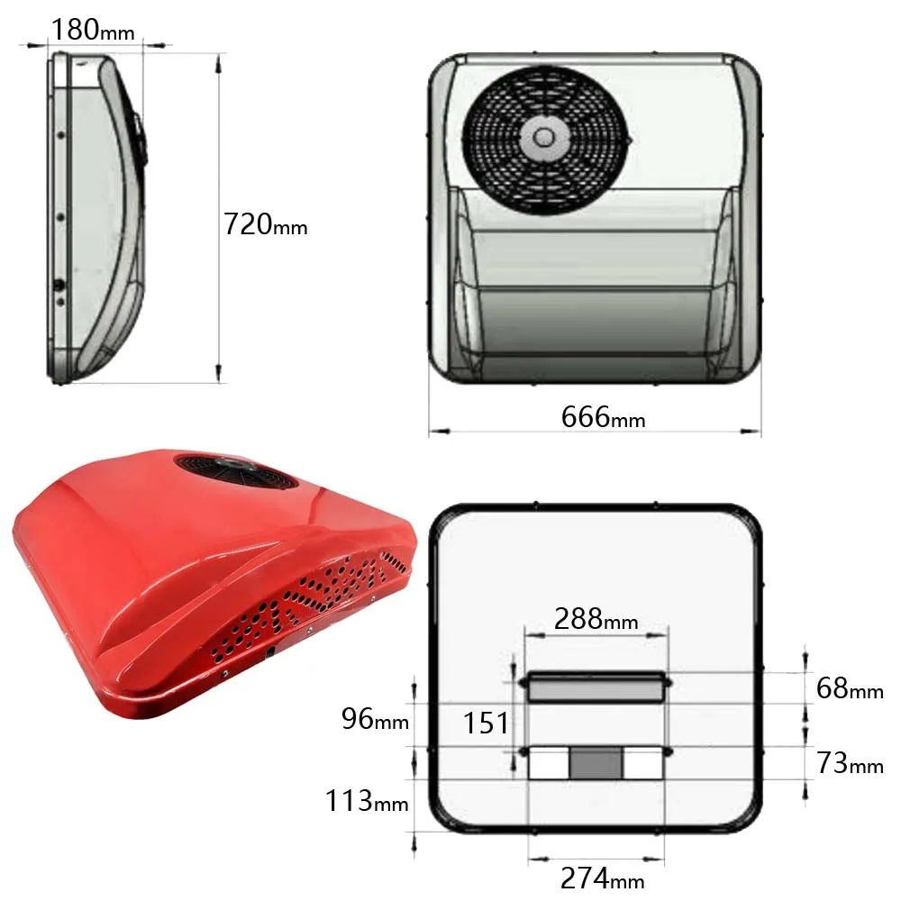 【Parameters】Cooling Air volume is about 2300 W ; Heat Air Volume is 1000W; Power Consumption 960W, Rated Current 30-70A; Host Size: 666 *720 * 160 mm, Refrigerant R134A