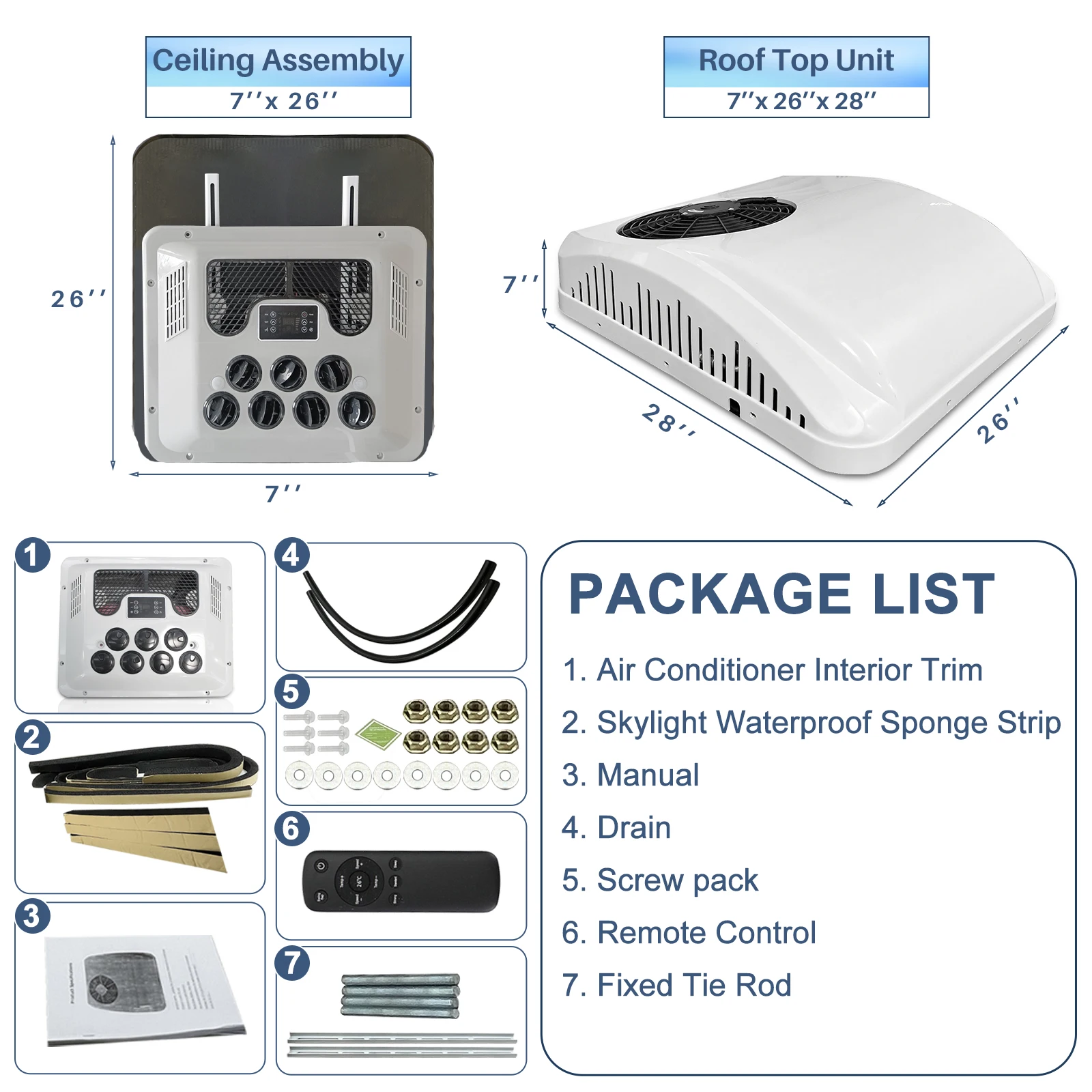 Treeligo 24v Electric RV roof Air Conditioner Heat and Cool 12V RV Rooftop Parking ac for Truck Camper Van Caravans Motor home