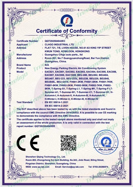 - External Testing Certification: ce