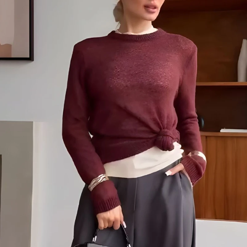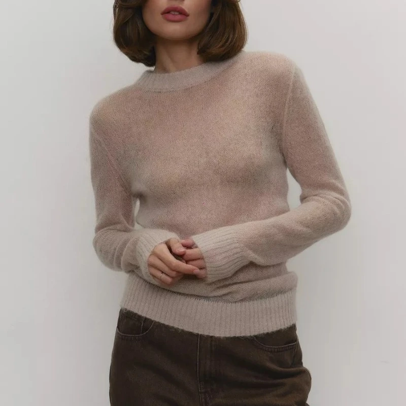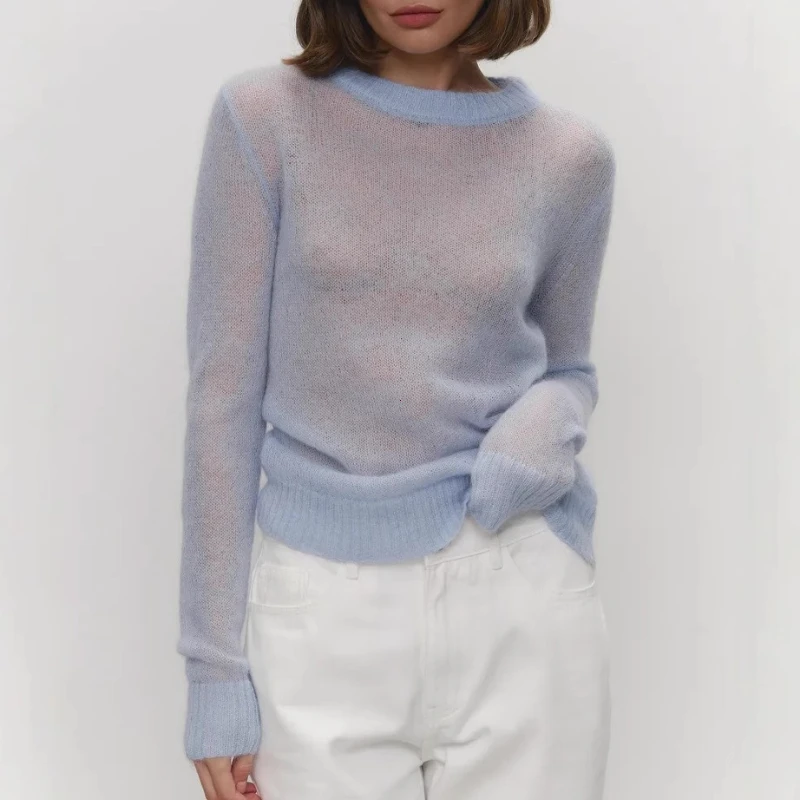 trendy Knit Sweater Women’s Long Sleeves O-Neck Pullover Sweater Lady Loose See Through Top Solid Casual tops women clothing