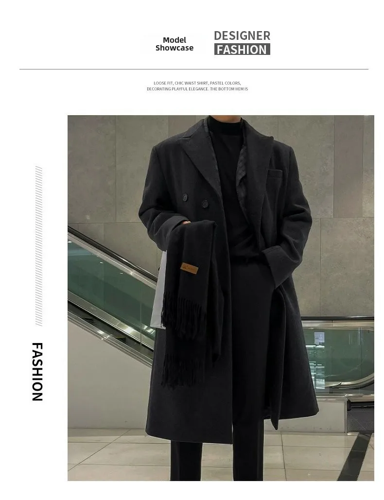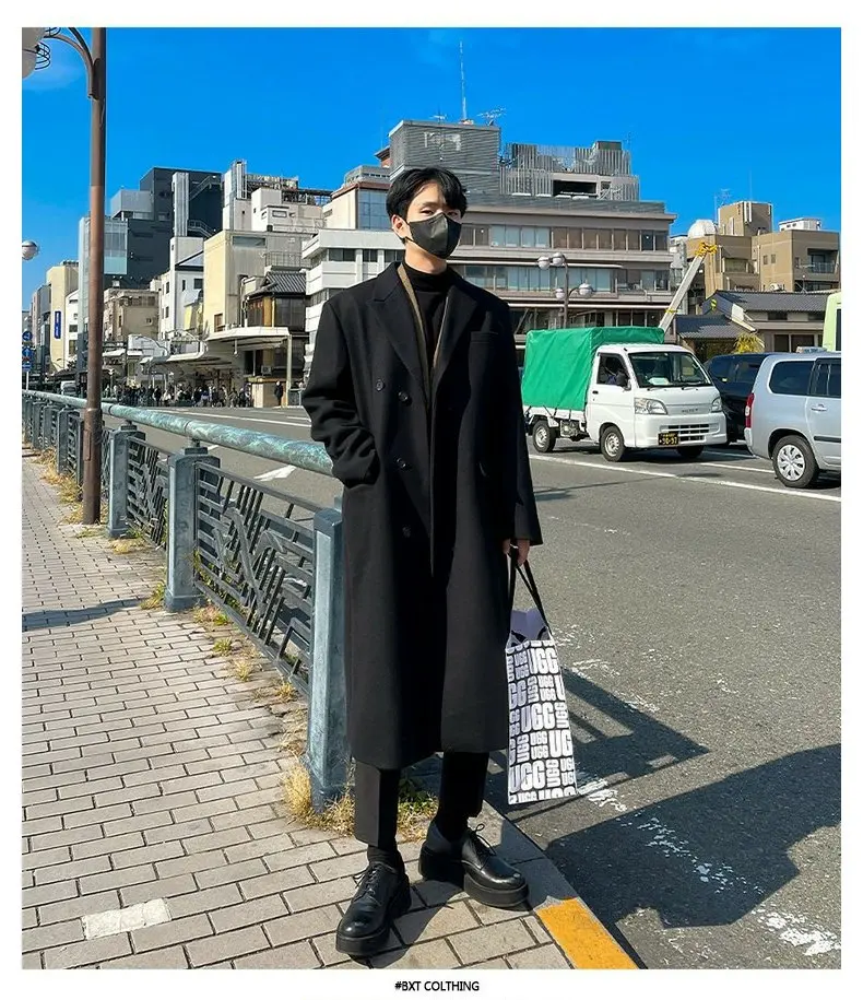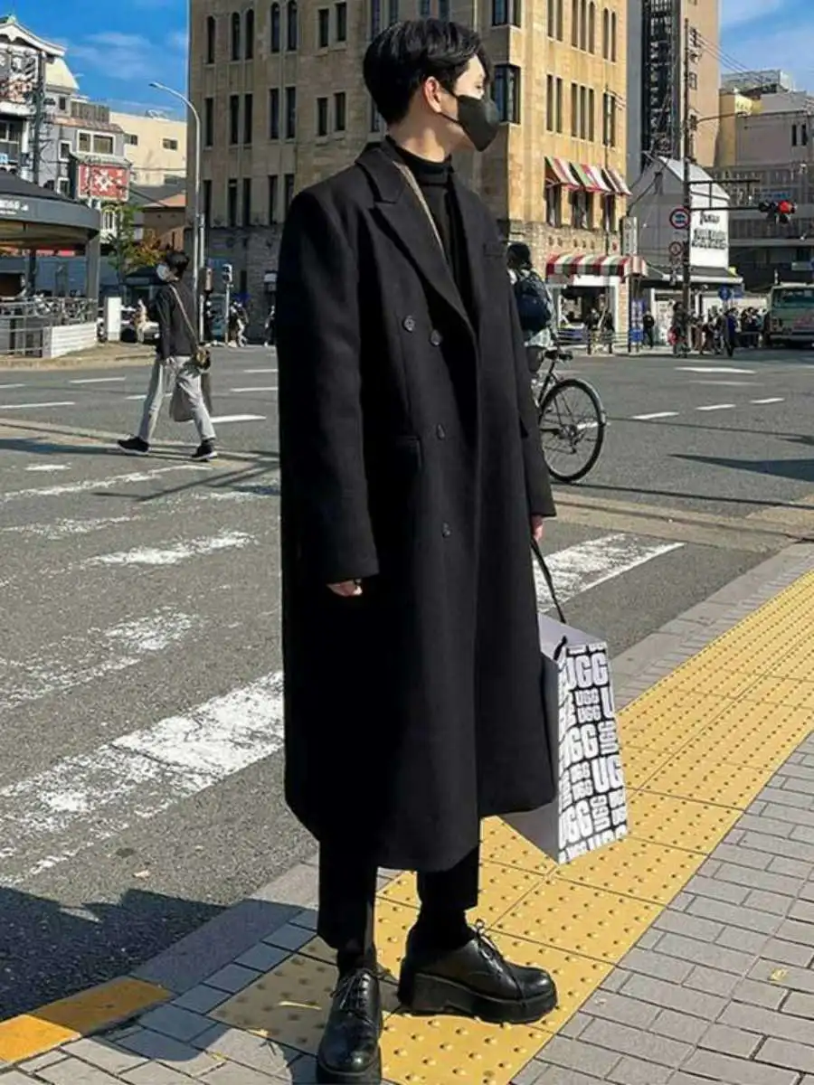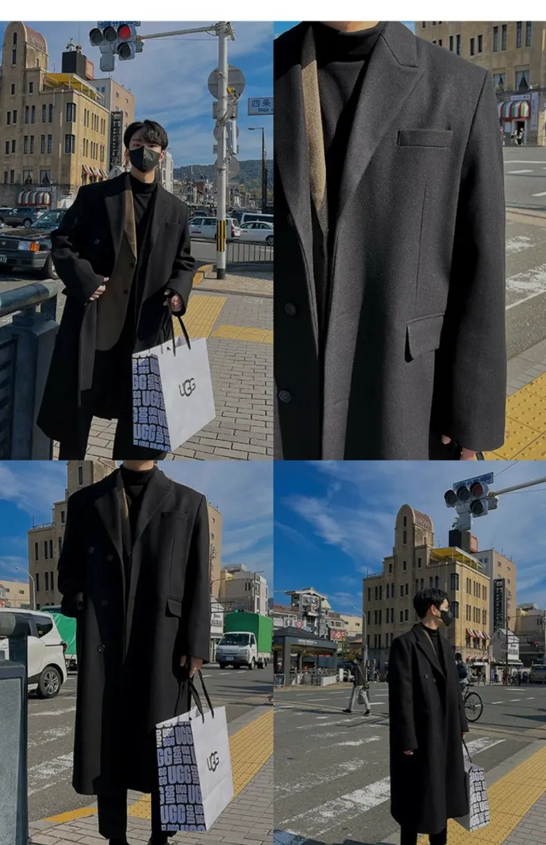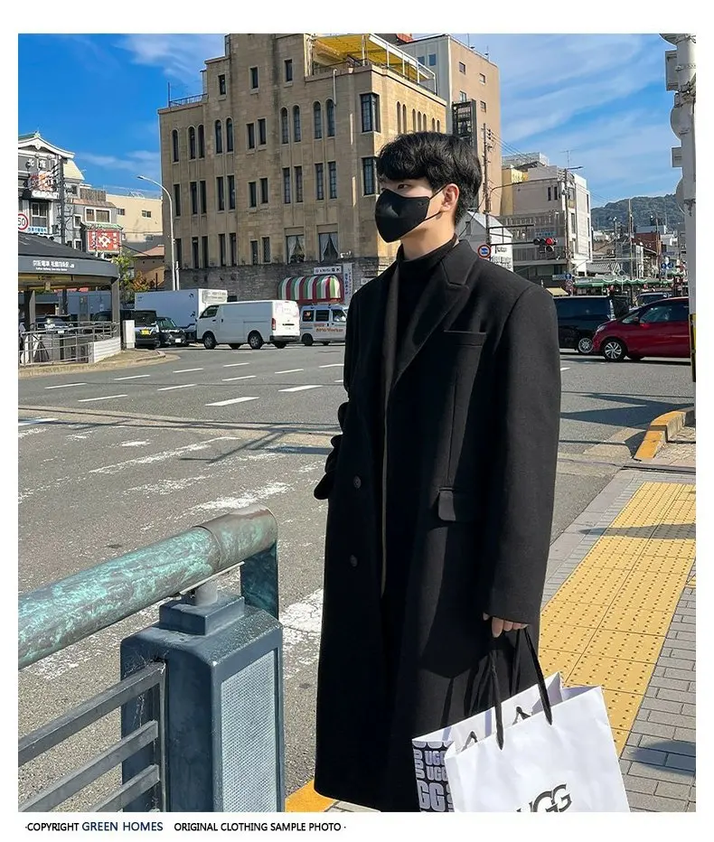 This winter men’s wool coat features a trendy Korean style, perfect for those who want to stay ahead in fashion.