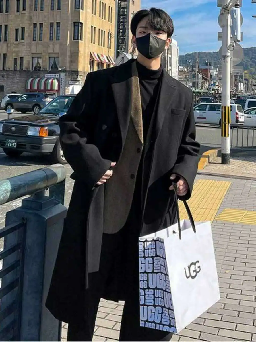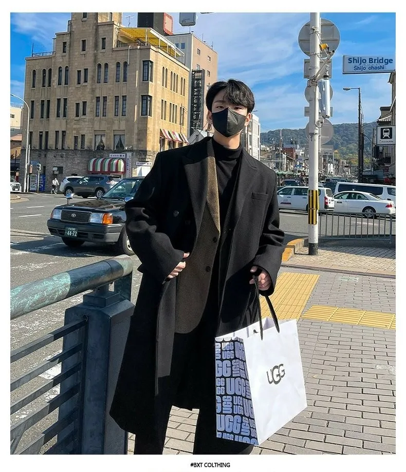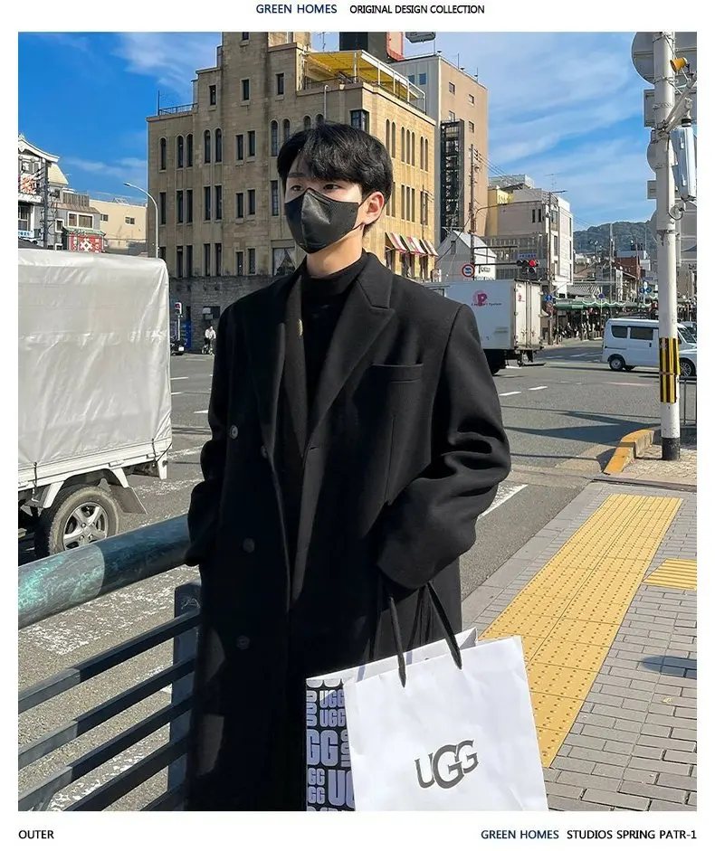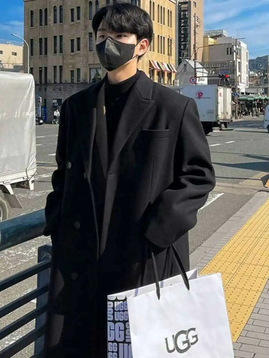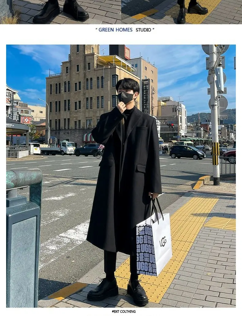 This winter men’s wool coat features a trendy Korean style, perfect for those who want to stay ahead in fashion.