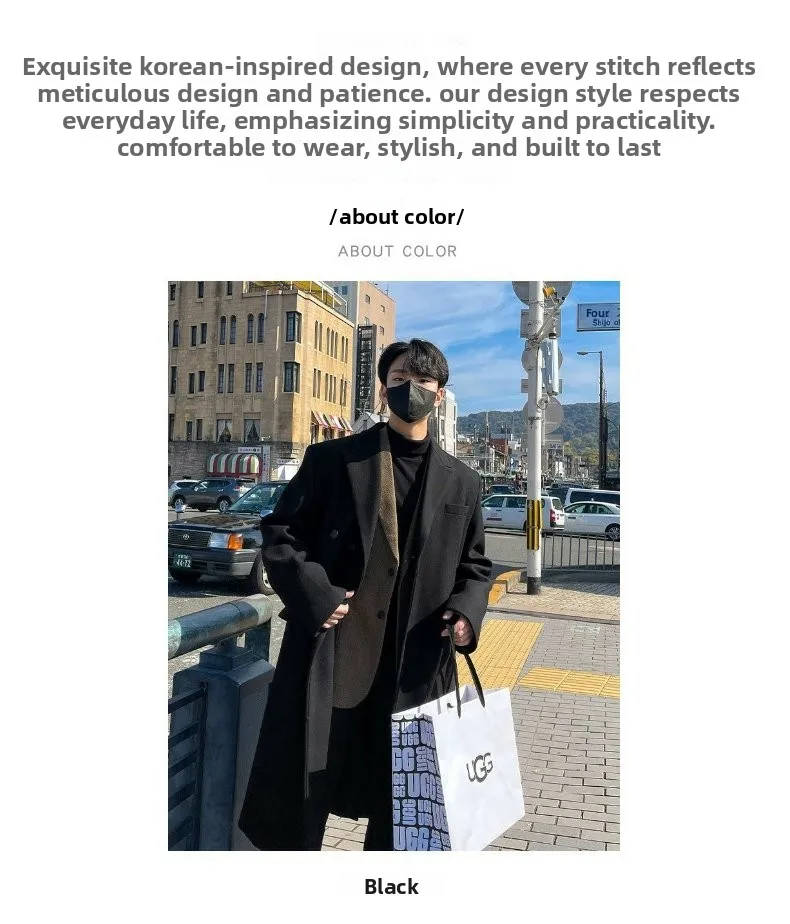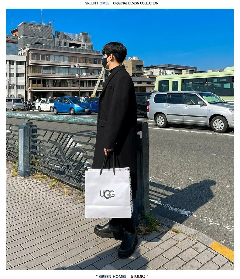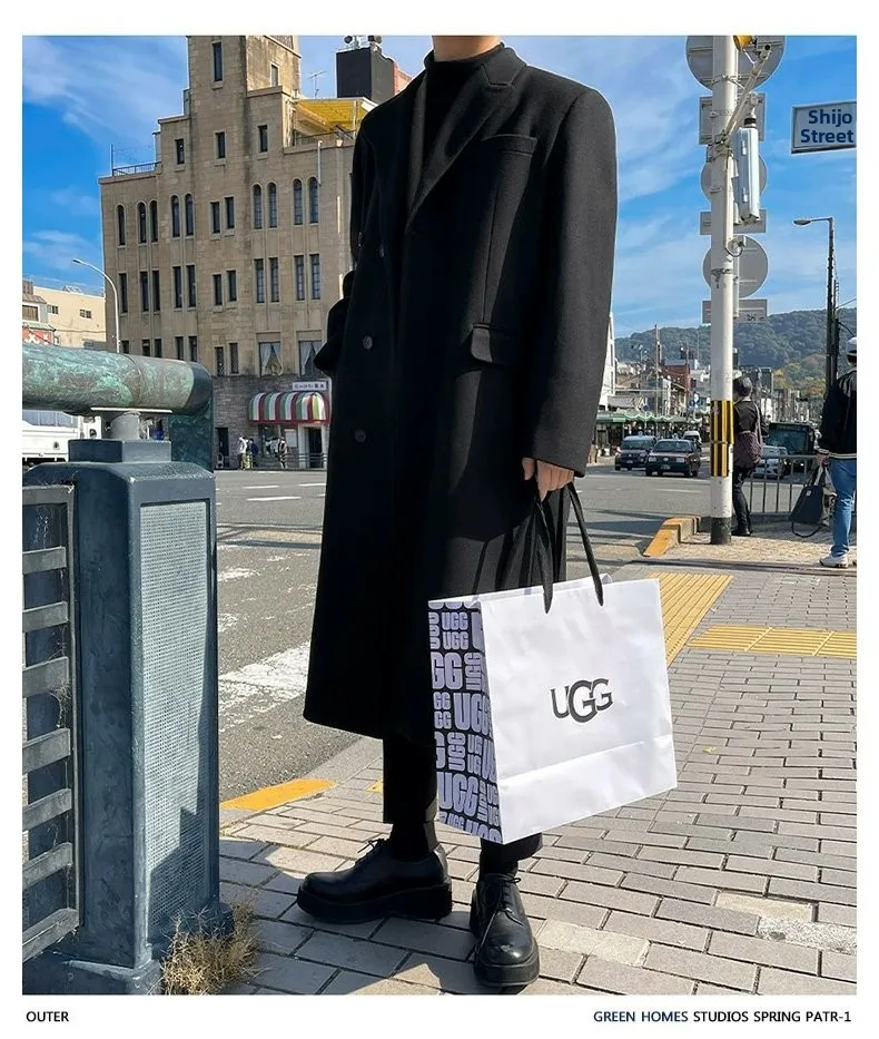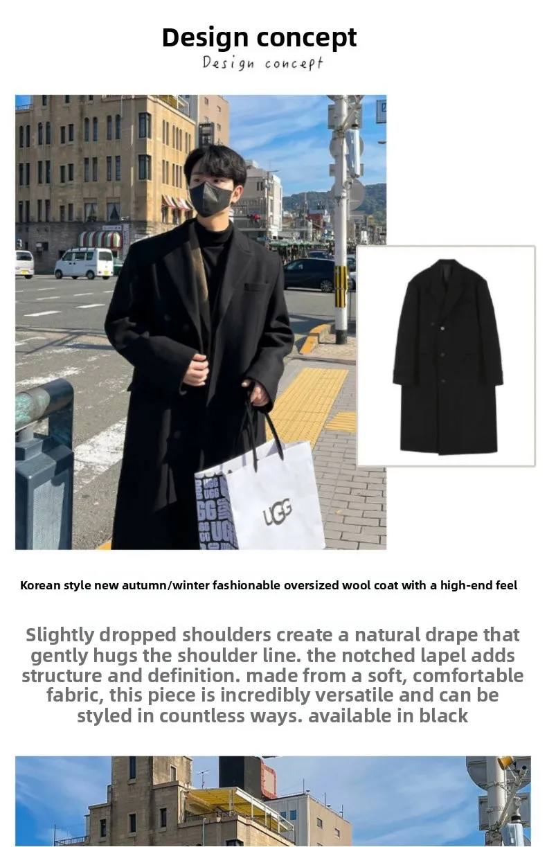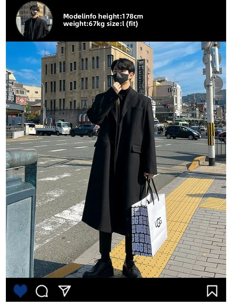This winter men’s wool coat features a trendy Korean style, perfect for those who want to stay ahead in fashion.