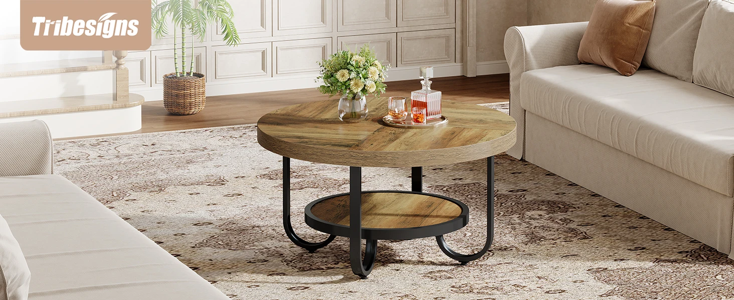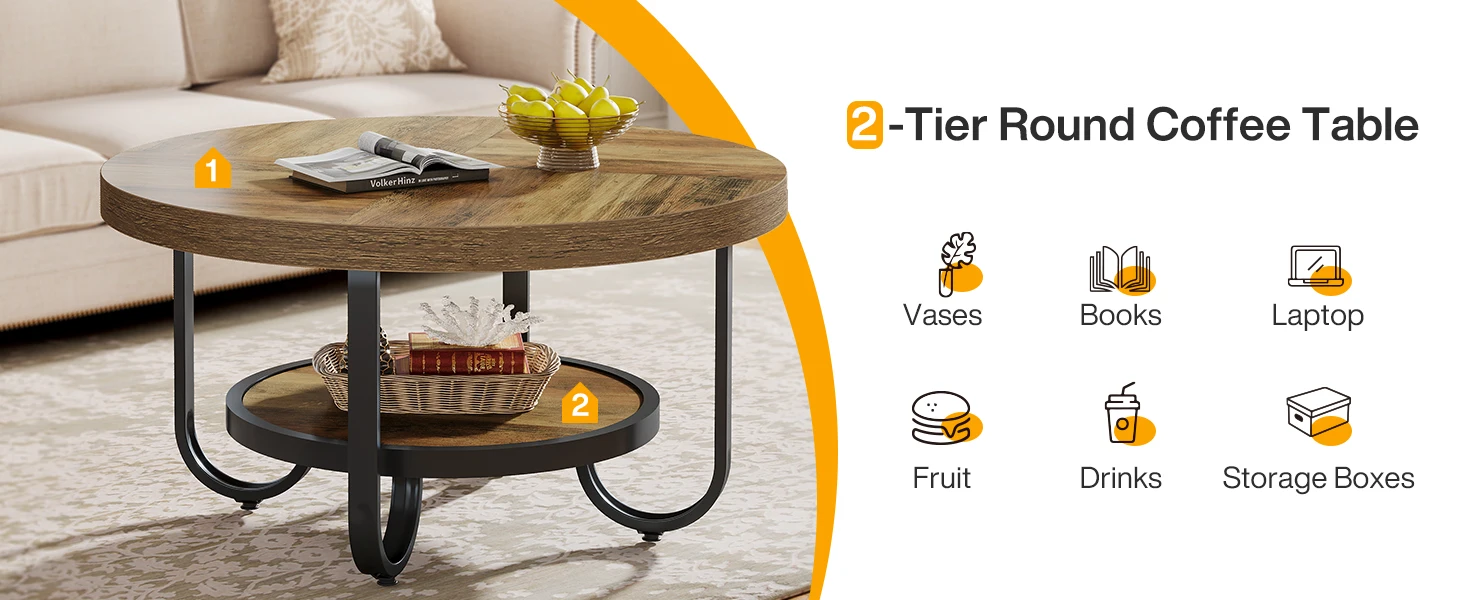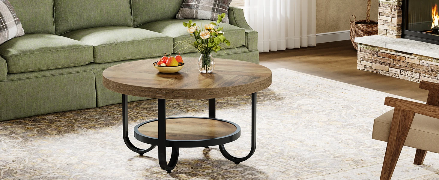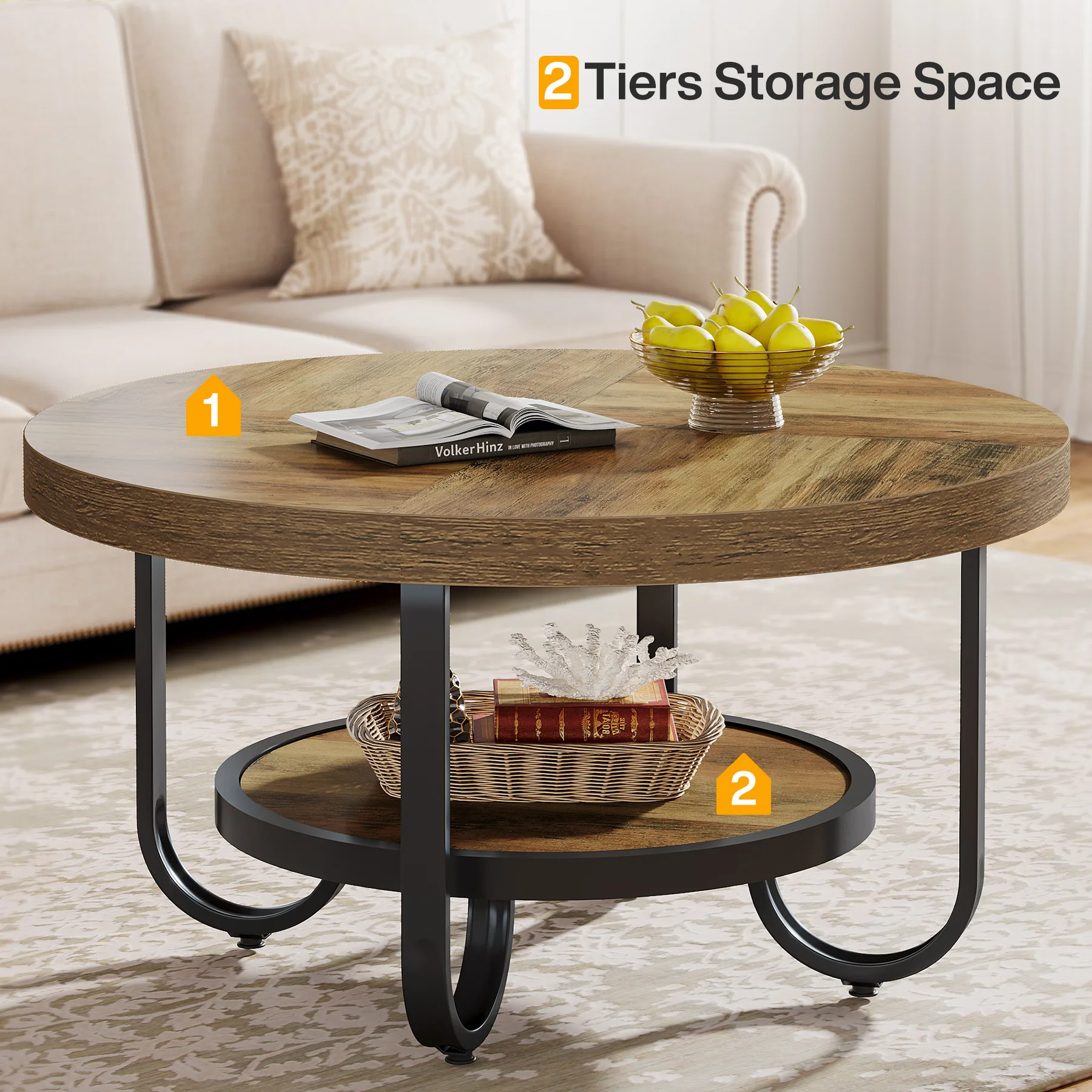 Tribesigns 2-Tier Industrial Round Coffee Table