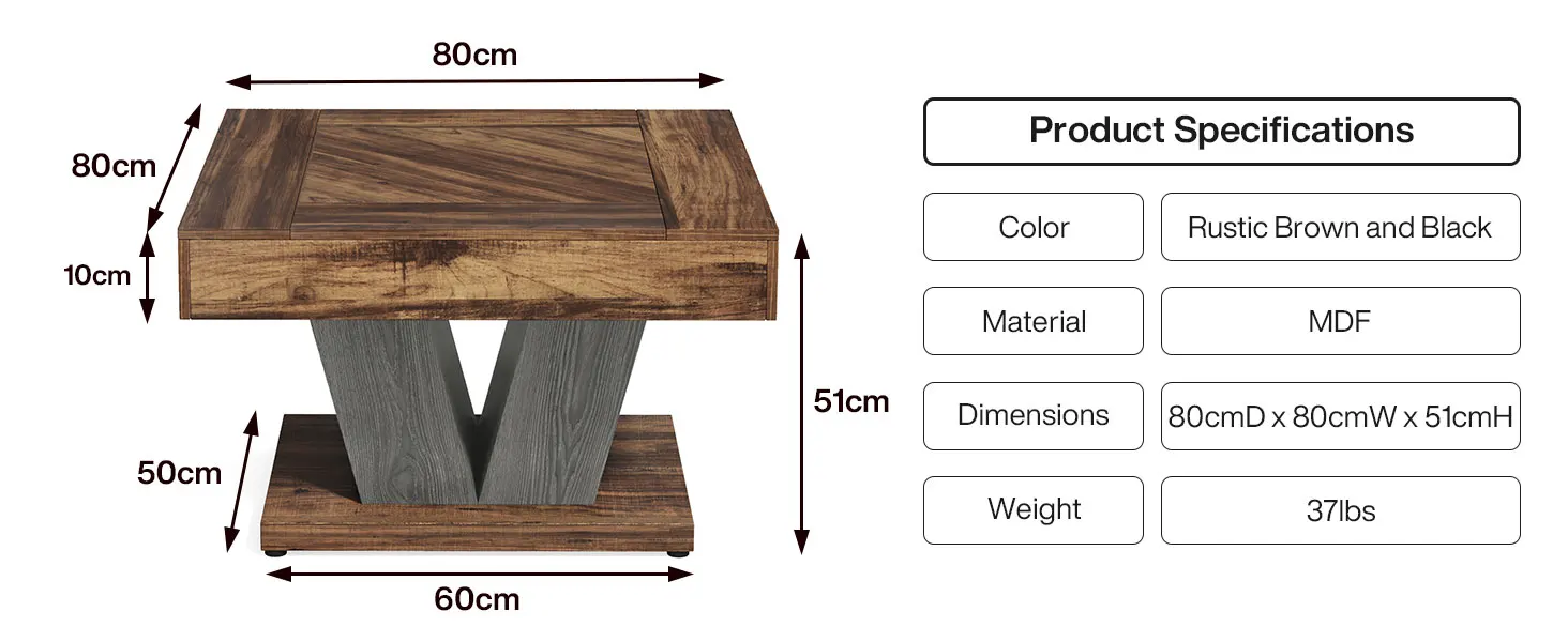 Easy to Assemble: The square coffee table for living room comes with all necessary hardware and tools, along with clear assembly instructions, which make assembly a breeze. For any issue, we will reply within 24 hours for support. Add this industrial coffee table and just watch as it elevates your space, creating your family's favorite cozy nook!
