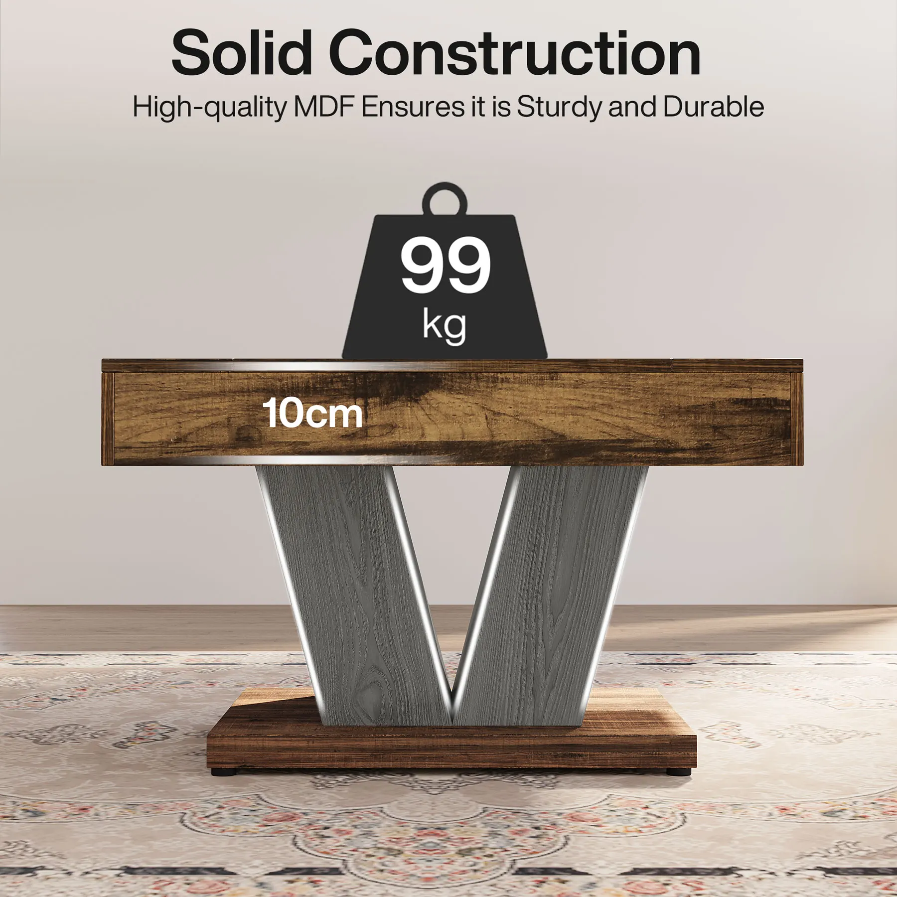 Sturdy and Durable: This ain't just another flimsy piece of furniture. Our quality living room table is constructed with a thickened MDF tabletop and a wood frame; this rustic coffee table has a strong load-bearing capacity of up to 220 lb. Adjustable foot pads protect your floor from scratches.