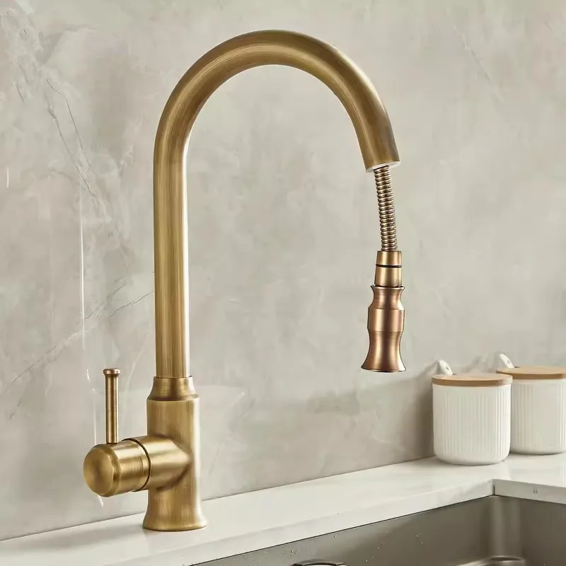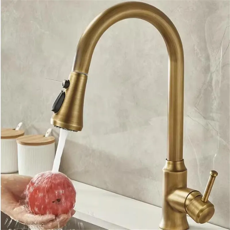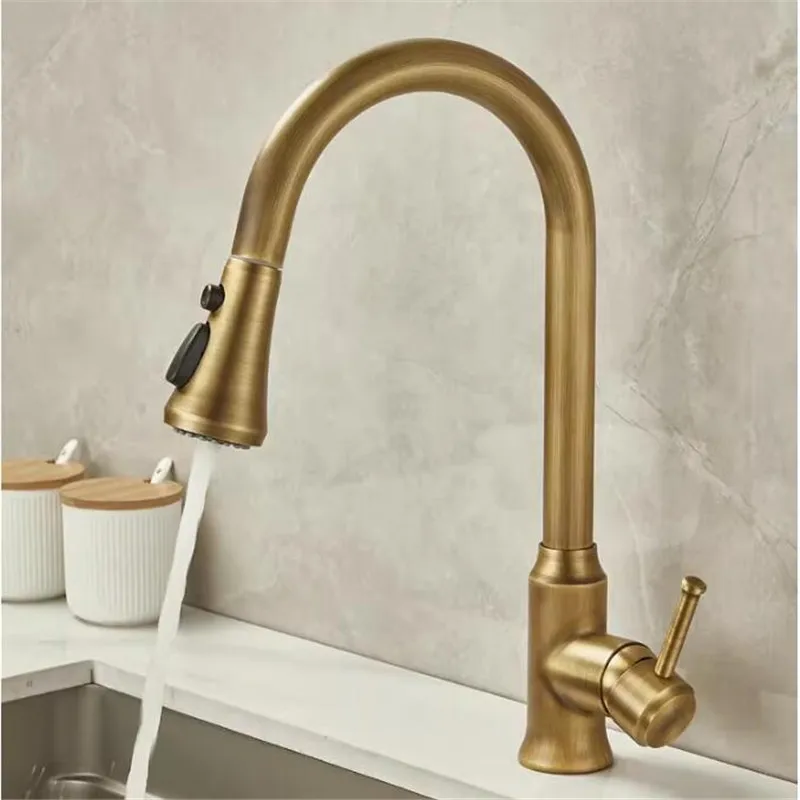 Tuqiu Antique Pull Out Kitchen Faucet Brass Sink Faucet Mixer Tap 360 degree rotation torneira cozinha mixer taps Kitchen Tap