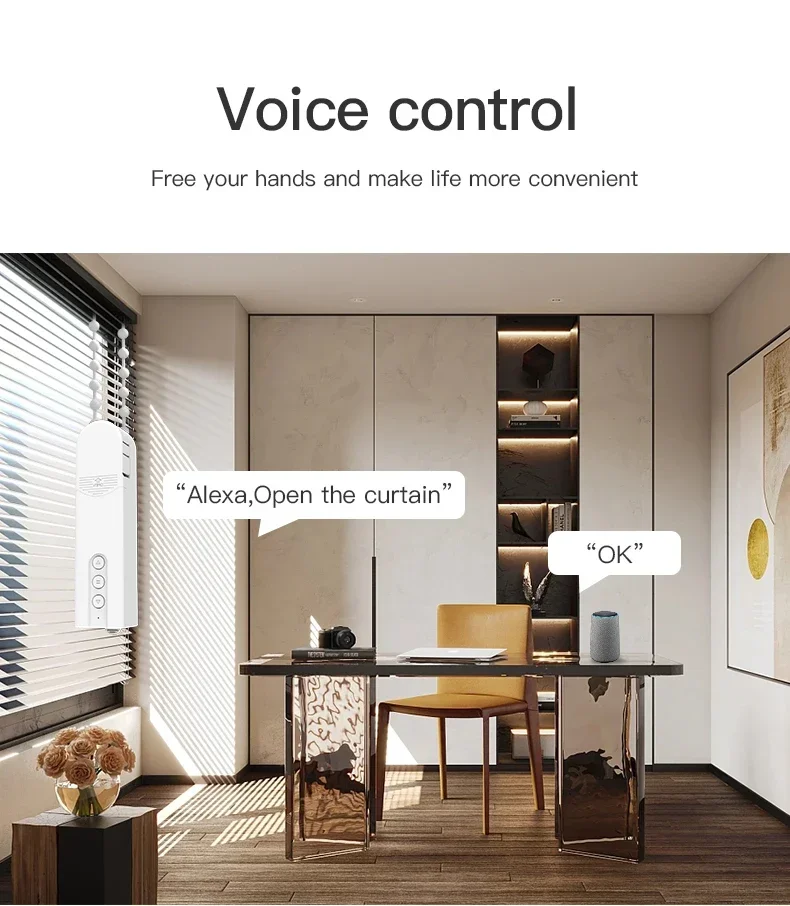 Voice control is more convenient: compatible with Alexa and Googlehome to open the curtains (voice control can only be achieved by adding Tuya Bluetooth gateway)