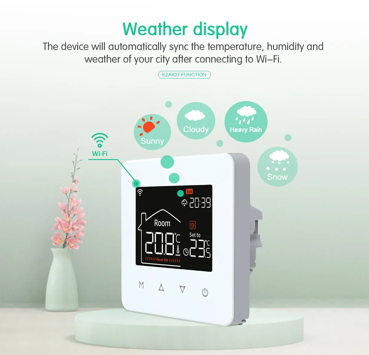 Automatically or manually set the weekly temperature for 6+1, 5+2 and 7 days in 6 time period per day to create a schedule that fits your lifestyle.