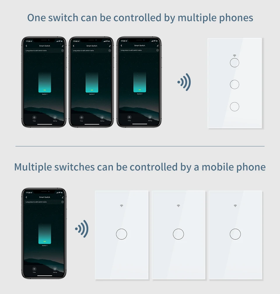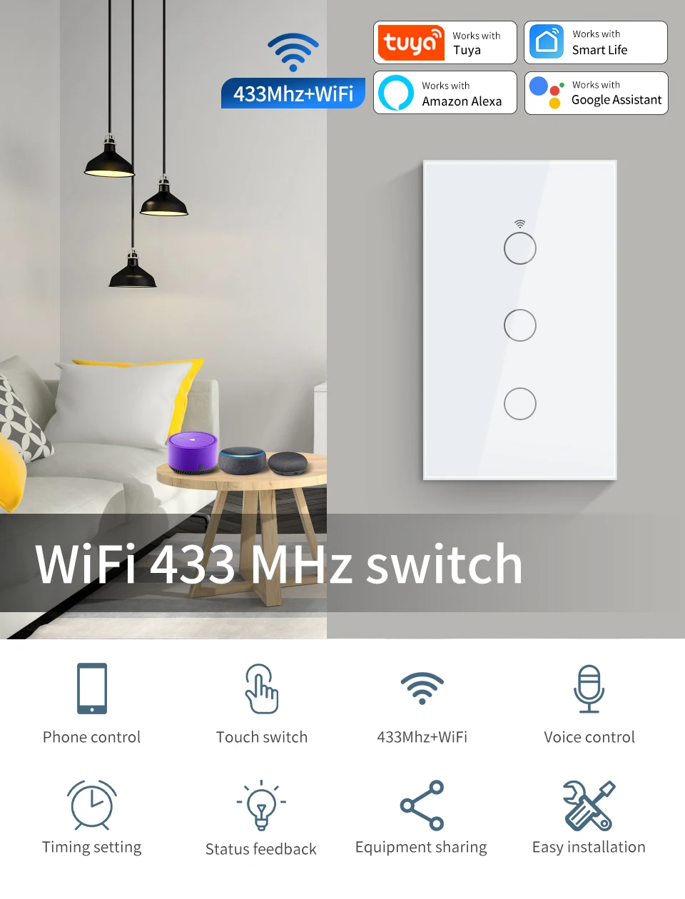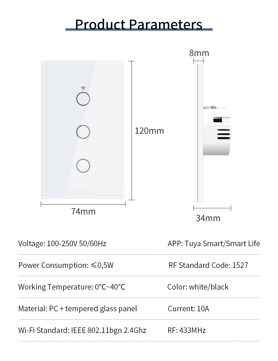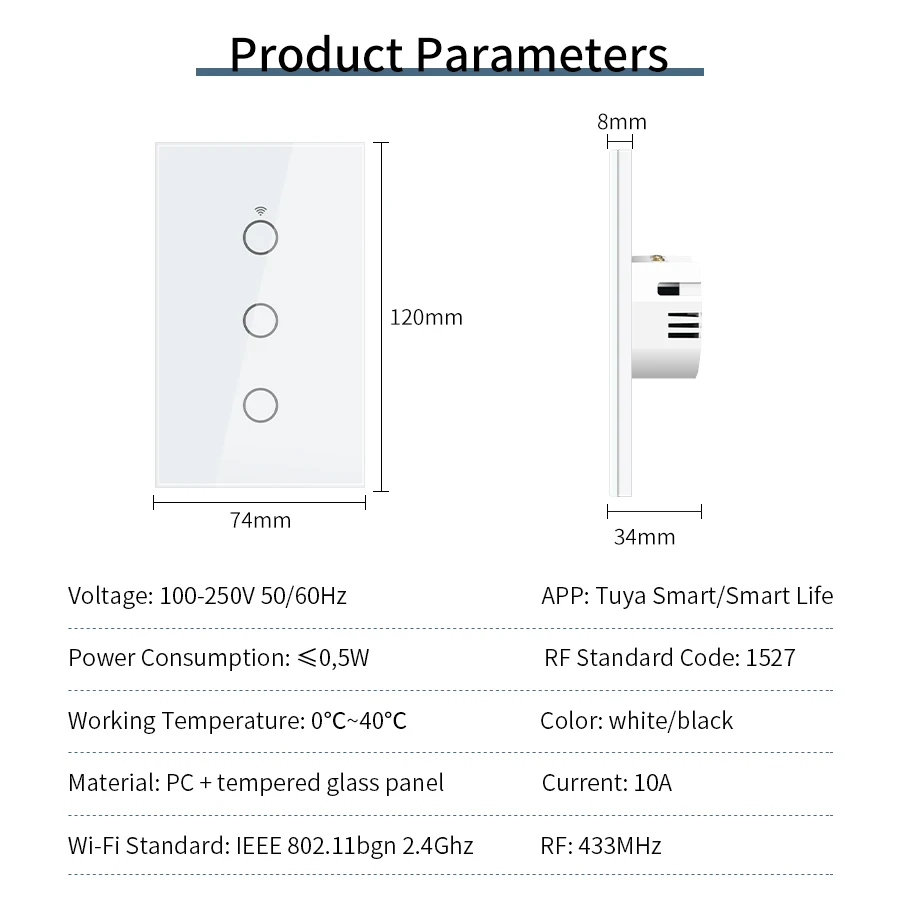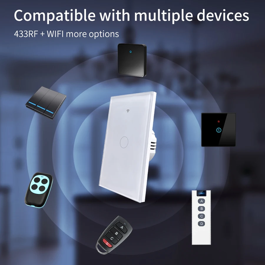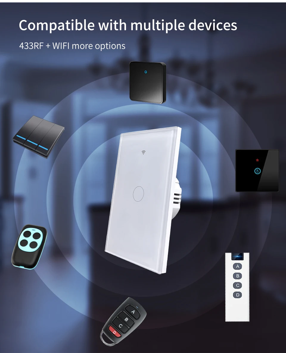 1. This smart switch can be used with 433mhz RF transmitter. Control range: ≤15M.