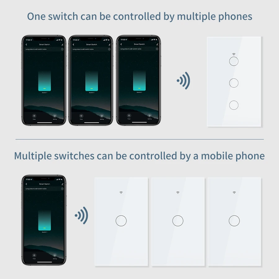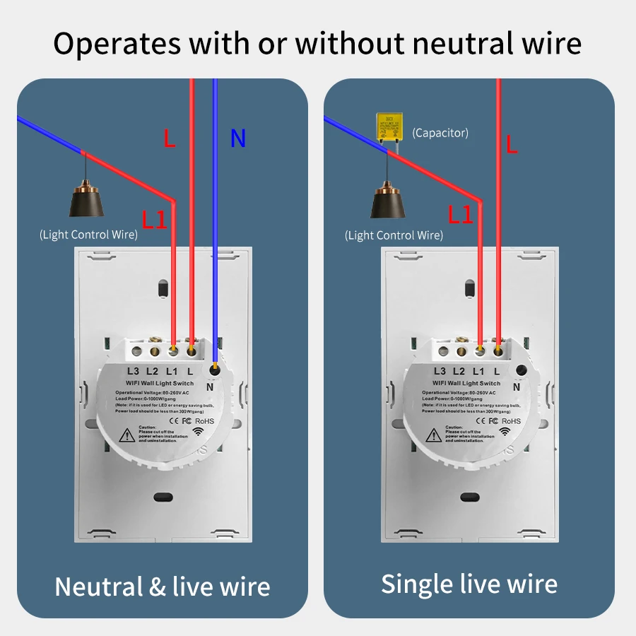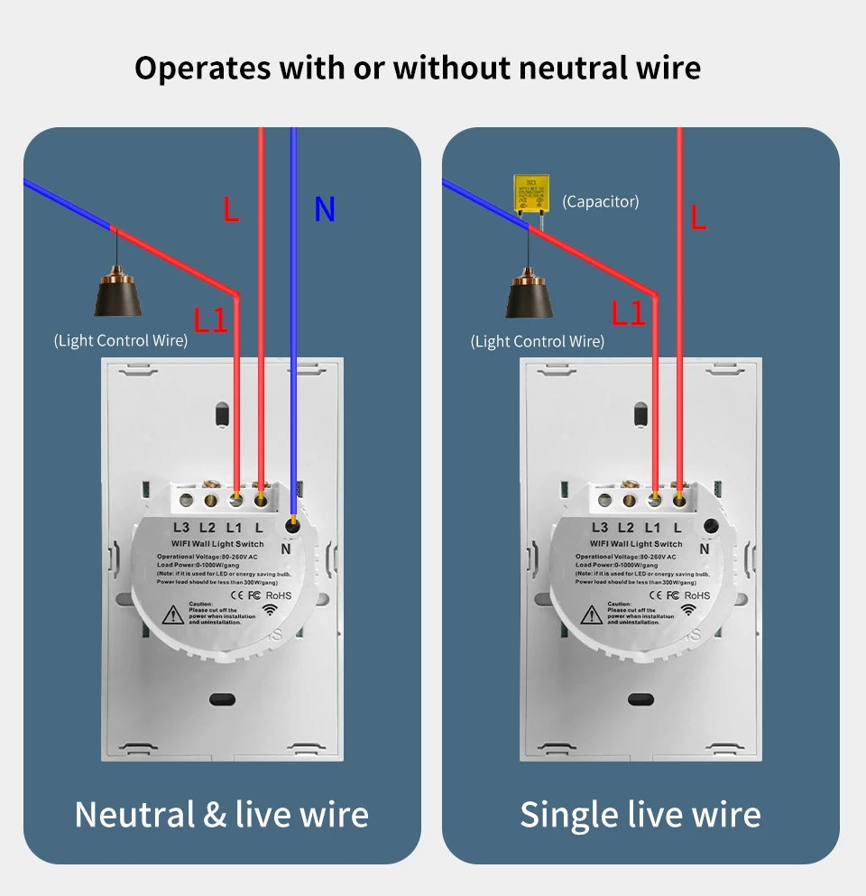 4. No matter whether the light bulb with dimming function is connected or not, the switch does not have the dimming function. It can only control the lights on and off.