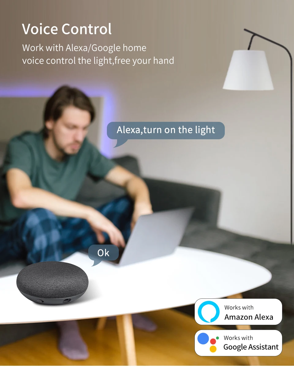 3. Voice Control: Perfectly compatible with Alexa, works with Google Home and Tmall Genie. When your hands are full, use voice commands to turn the lights on/off.