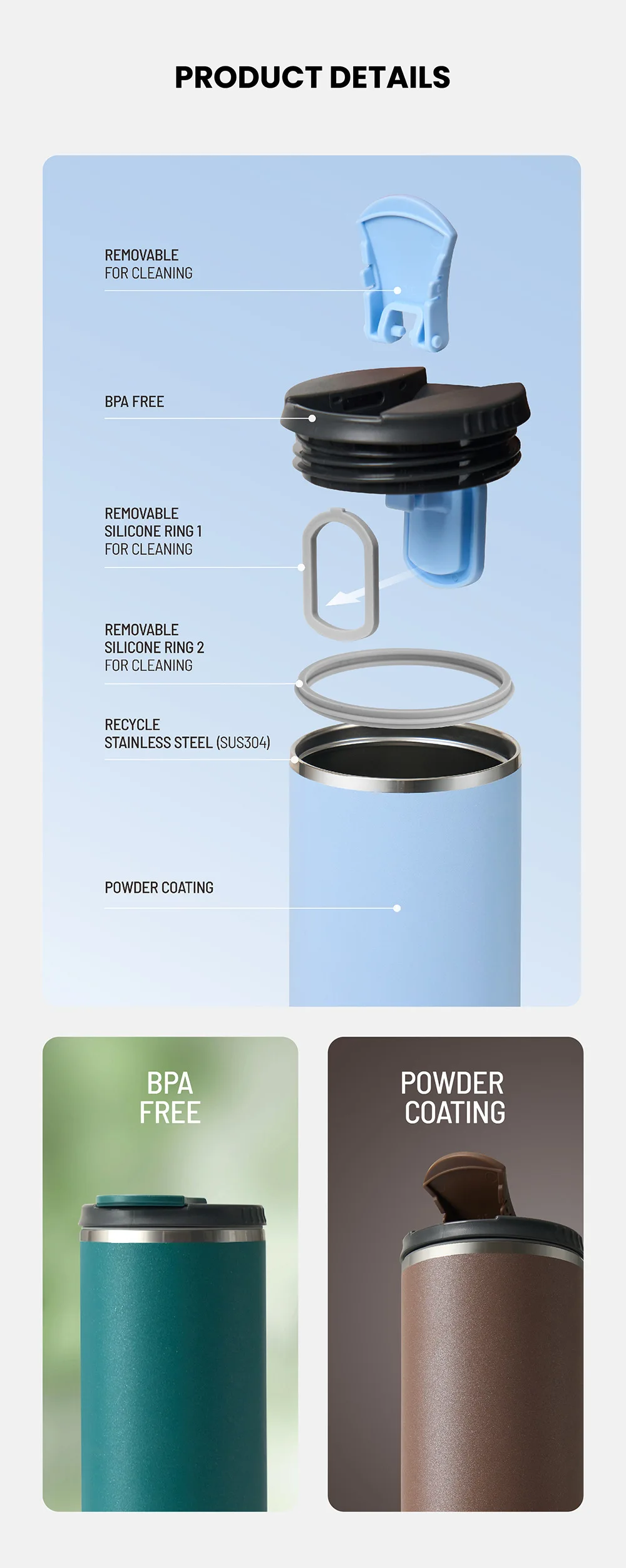 BPA-FREE & food-grade stainless steel (SUS304) for healthy sipping.