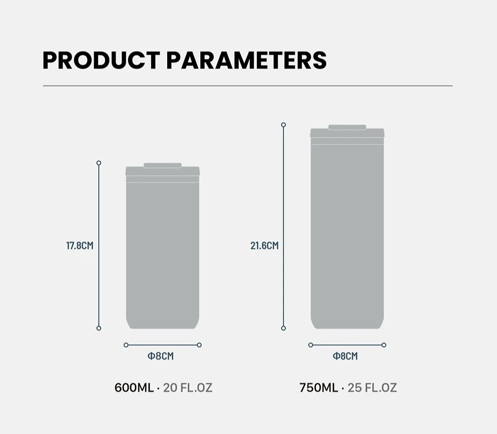 750ml (25oz) – Larger capacity for all-day hydration.