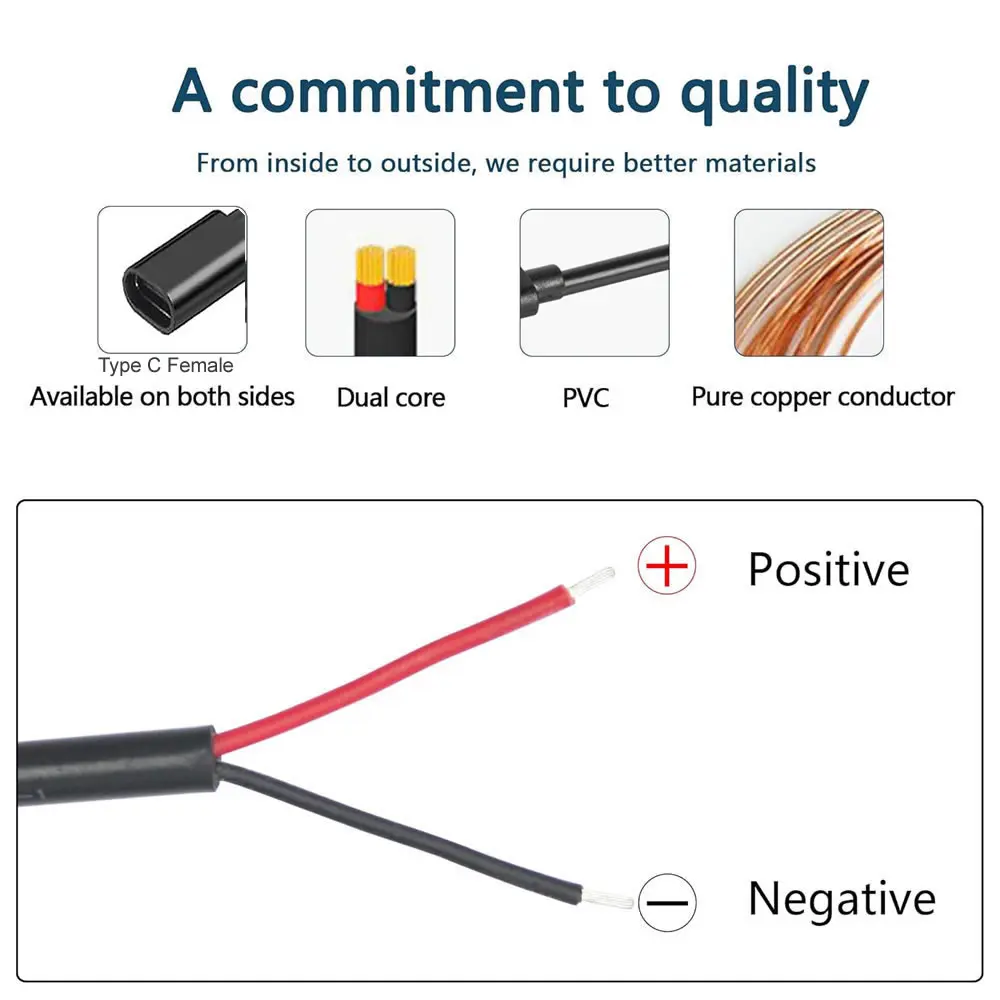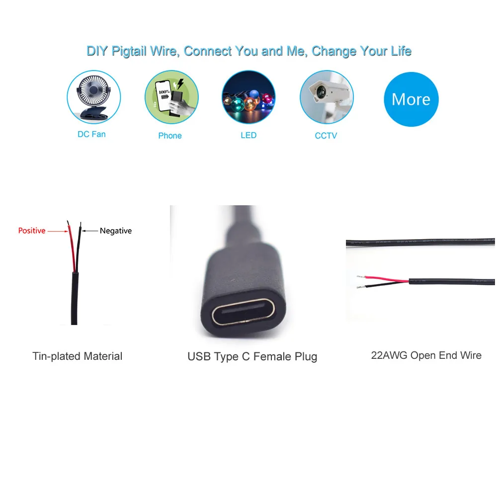 Item Name:USB C Type-c Female Plug 2 Wires Power Pigtail Cable