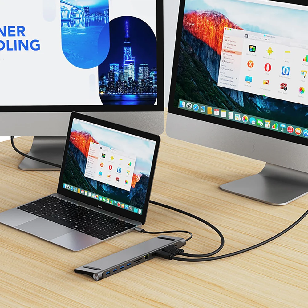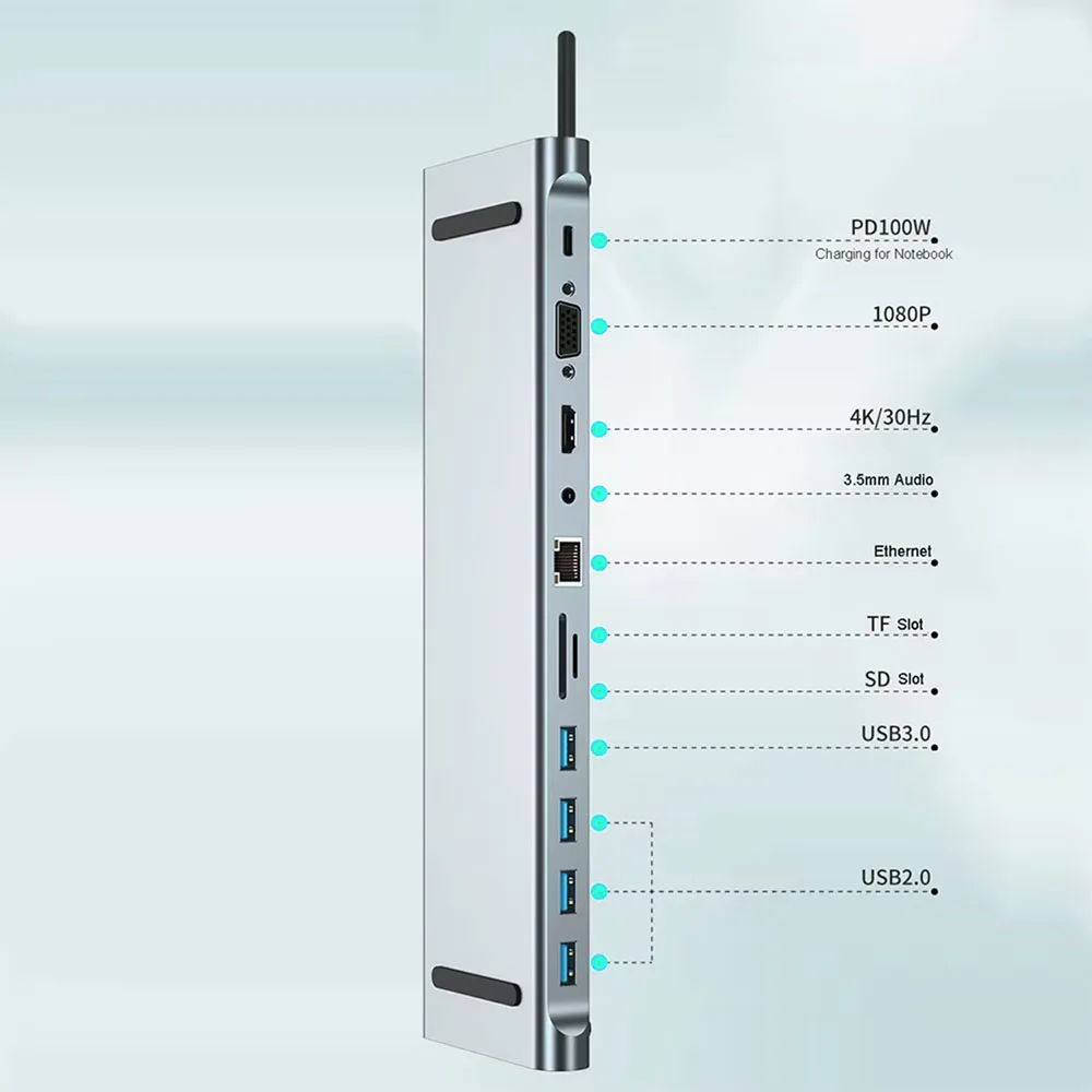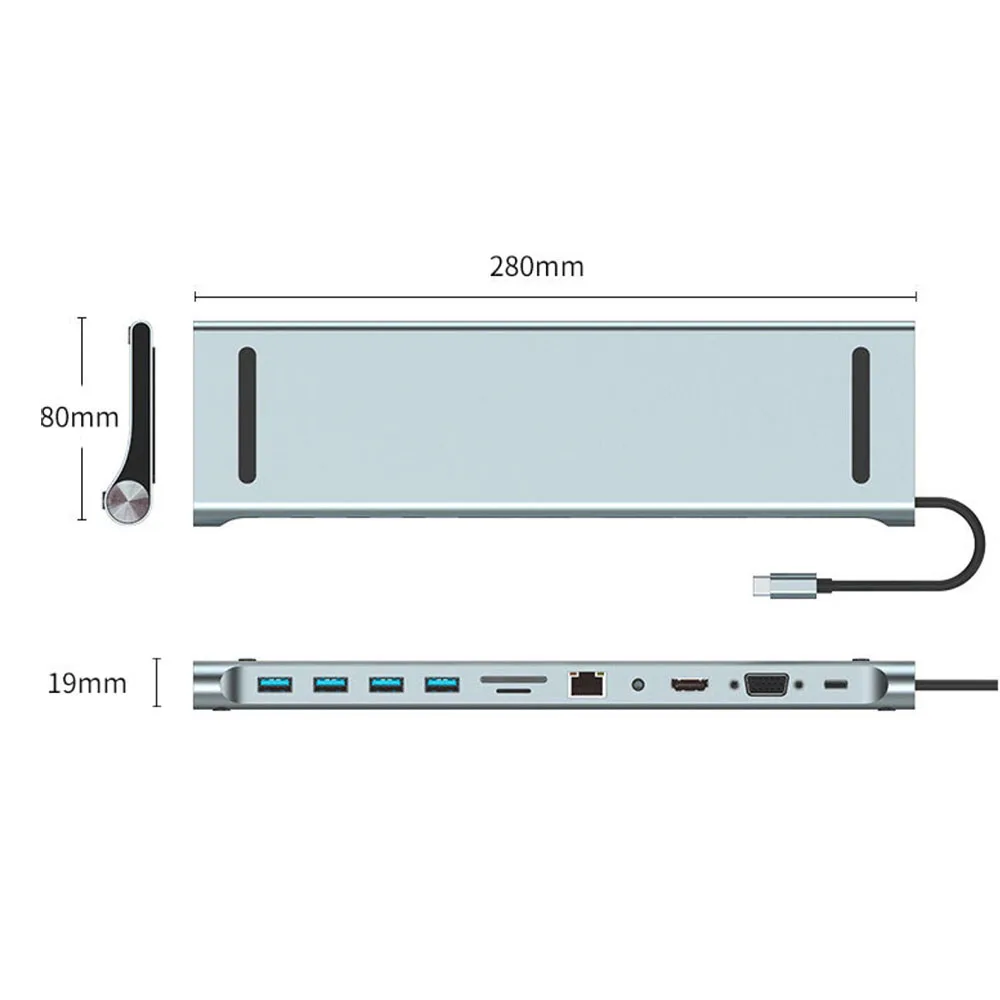 11 Ports Type C Hub Laptop Stand 100W PD Charger Adapter HDTV 1080P 4K 30HZ Audio 100 Mbps RJ45 Ethernet Cable Splitter USB Disk Micro SD TF Card Reader