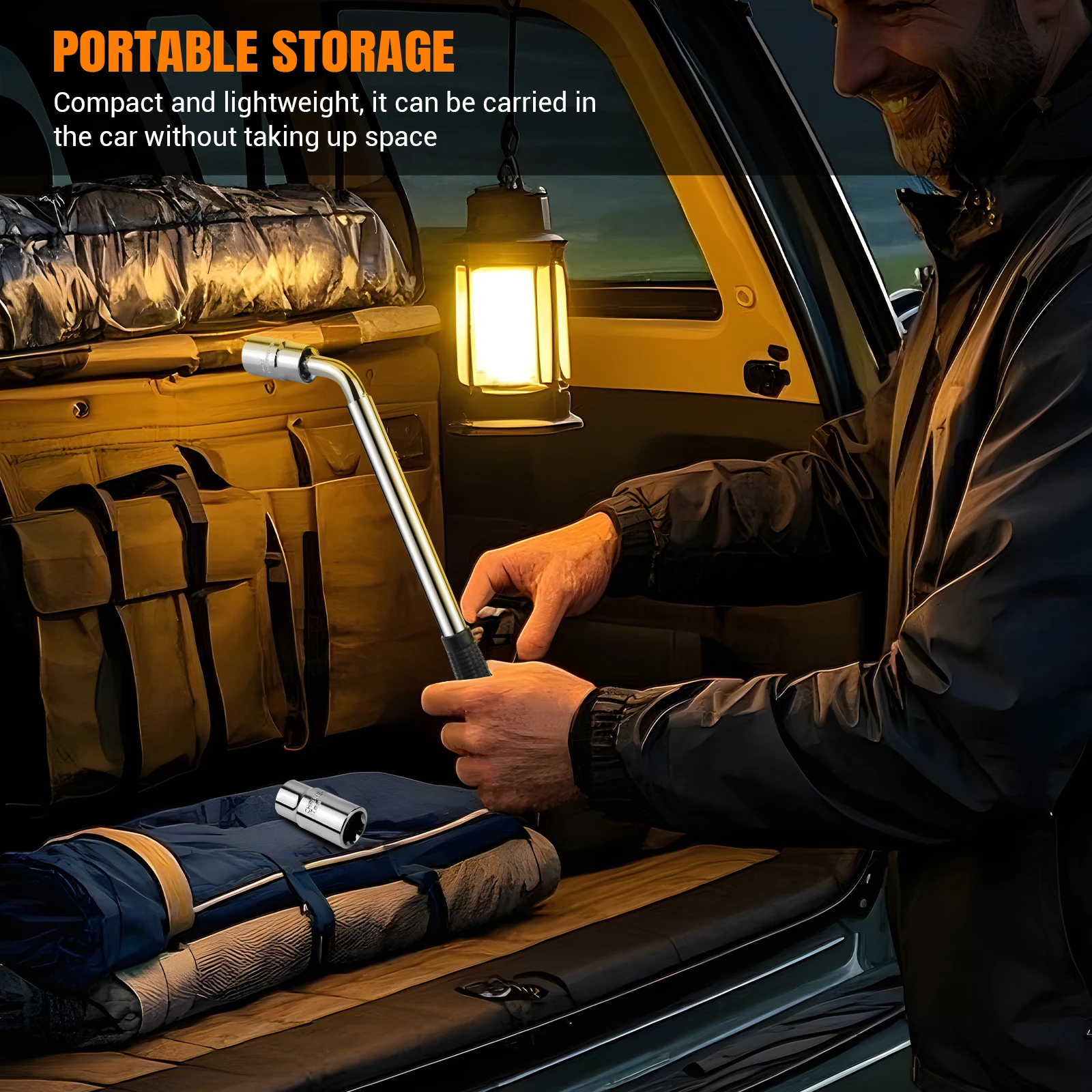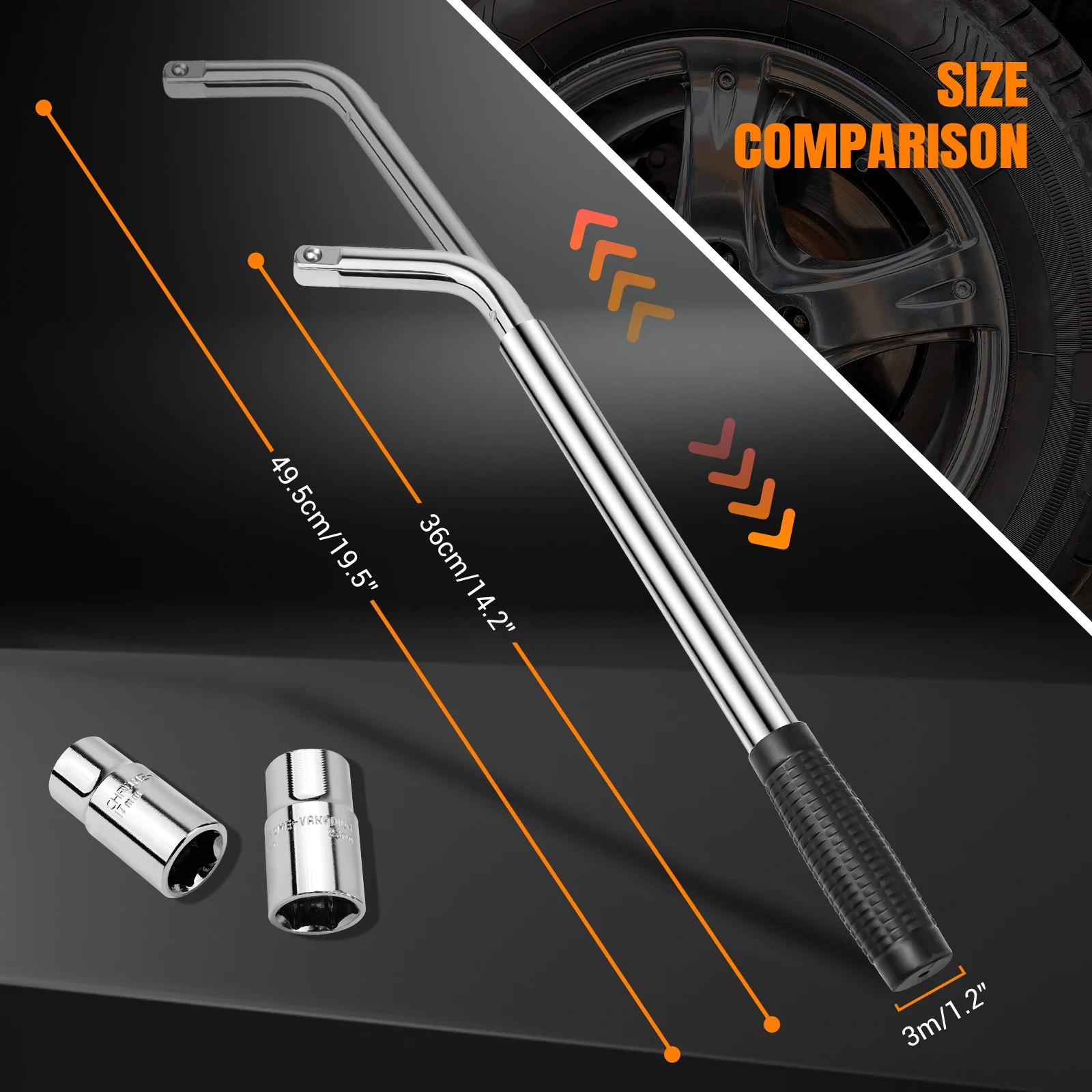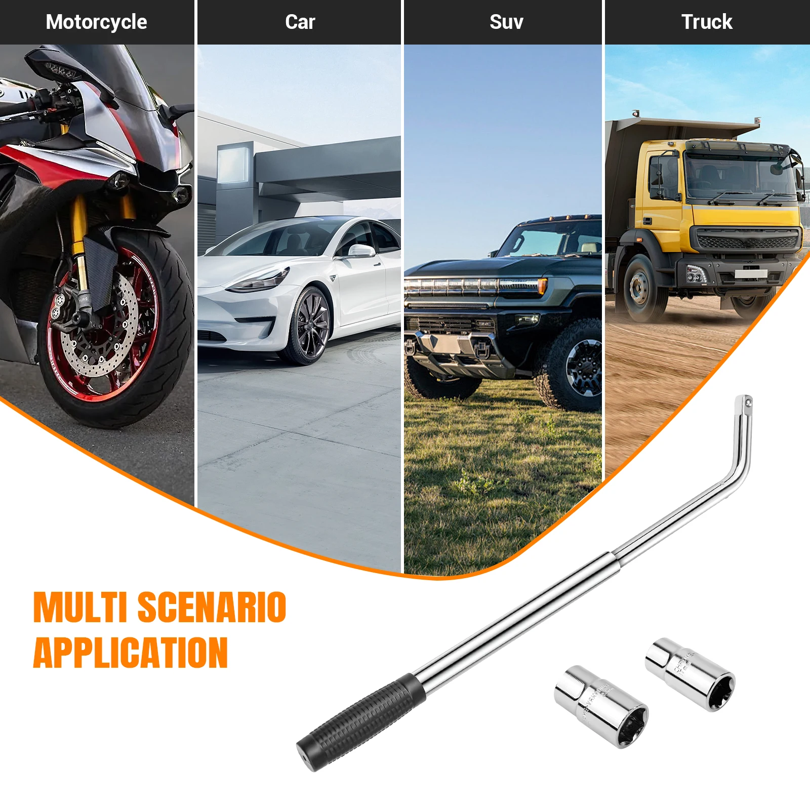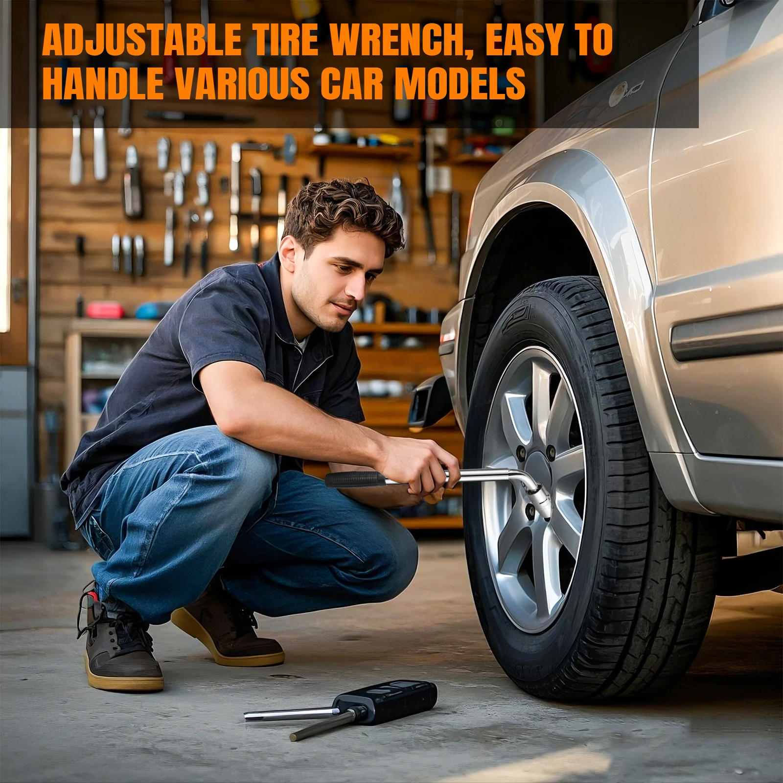 High torque telescopic automotive wheel nut spanner unlocks wheel nuts easily