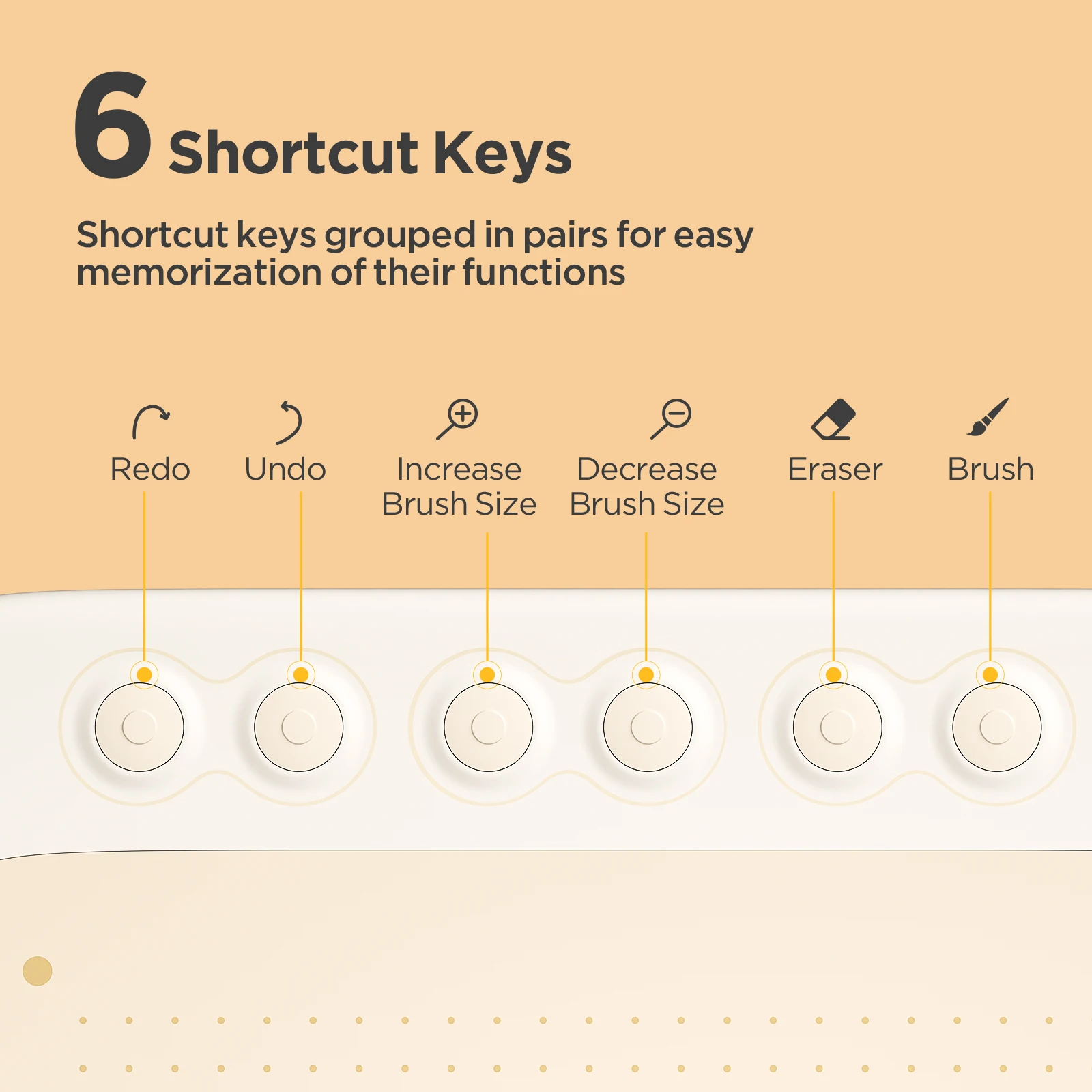 The tablet features six denoising shortcut keys grouped in pairs for easy memorization of their functions. With the convenience of the shortcut keys, you can easily access various drawing tools, simplifying the operation process.