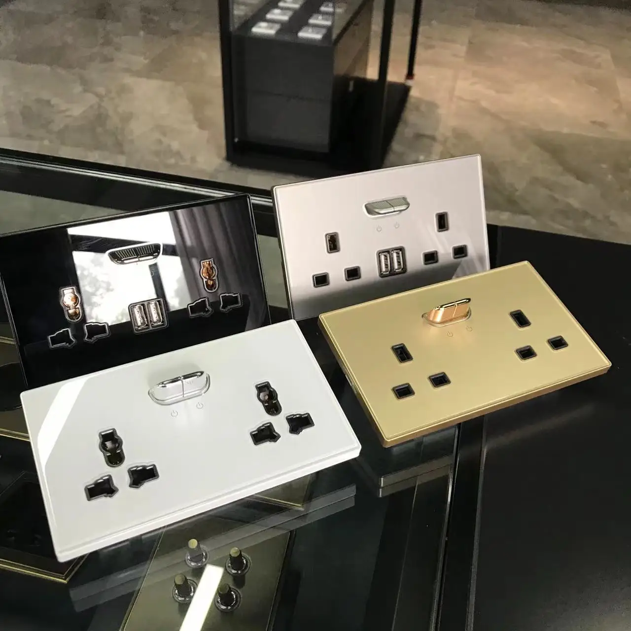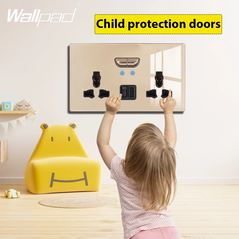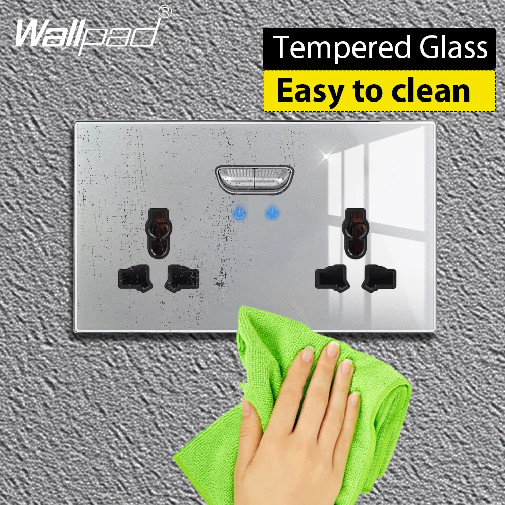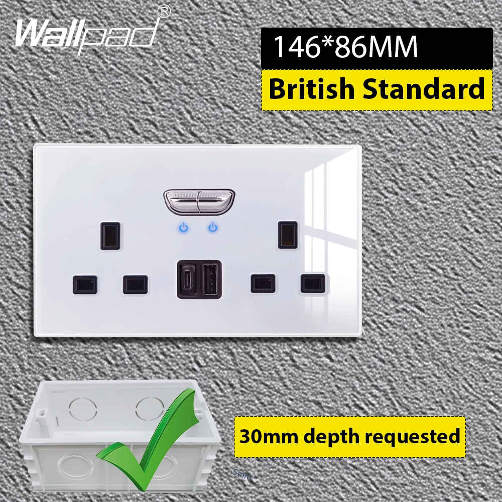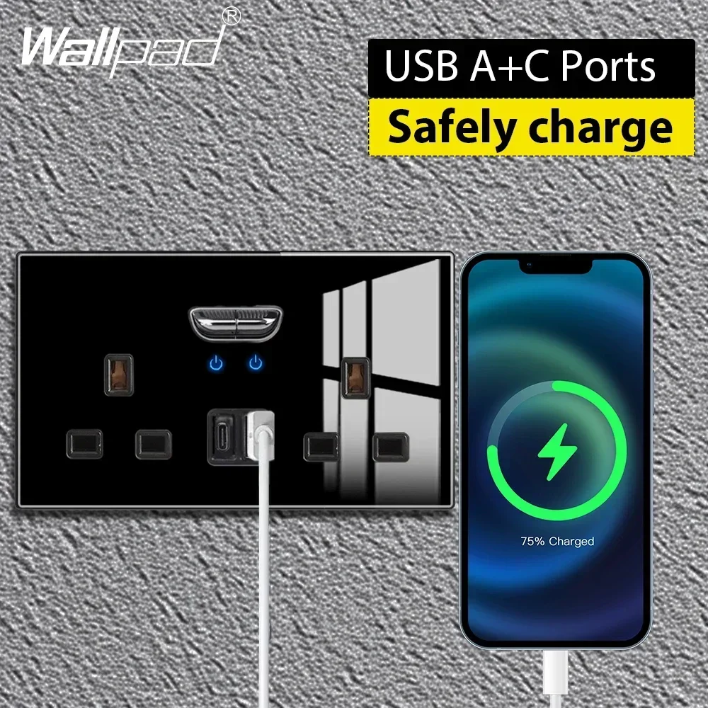 Double Switched Wall Sockets with LED Indicator Light USB Type C Charging Ports British Standard UK Plug Glass Panel 4 Colors