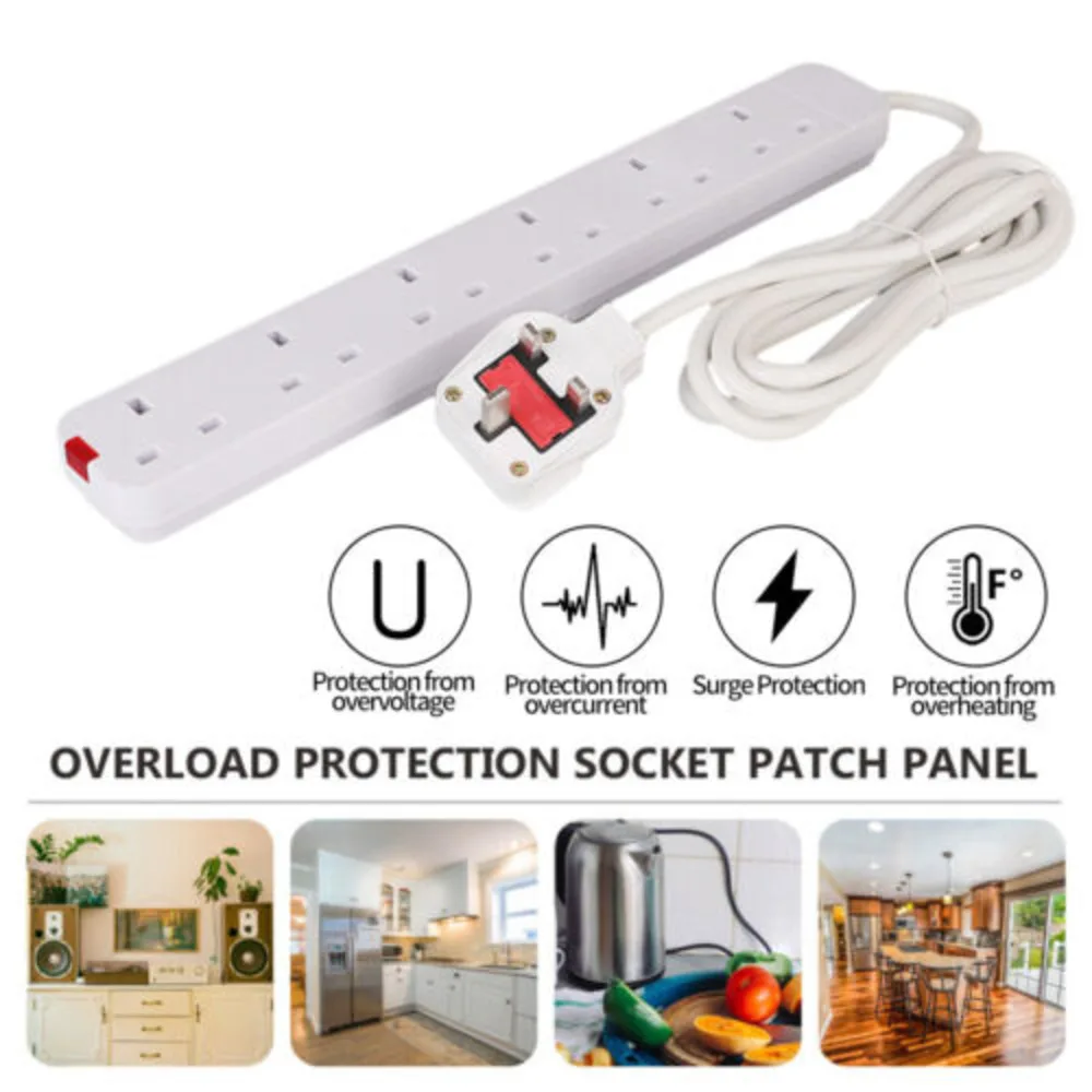 UK 3M White Extension Lead Cable Electric Plug Socket Mains Power 4/6 Gang Way