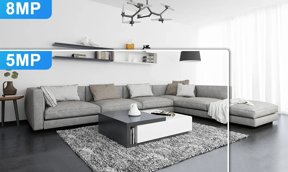 High-Definition interface output, Suport for online playback, Mobile remote,Multi-window display with 8.0MP Resolution. The angle will be more larger, and the image will be sore clearer.