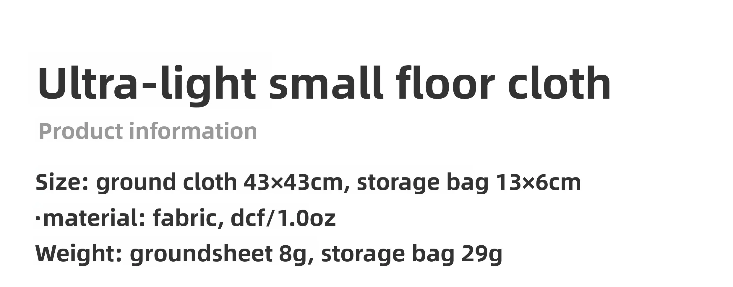 - Size: Groundsheet 43x43cm, storage bag 13x6cm