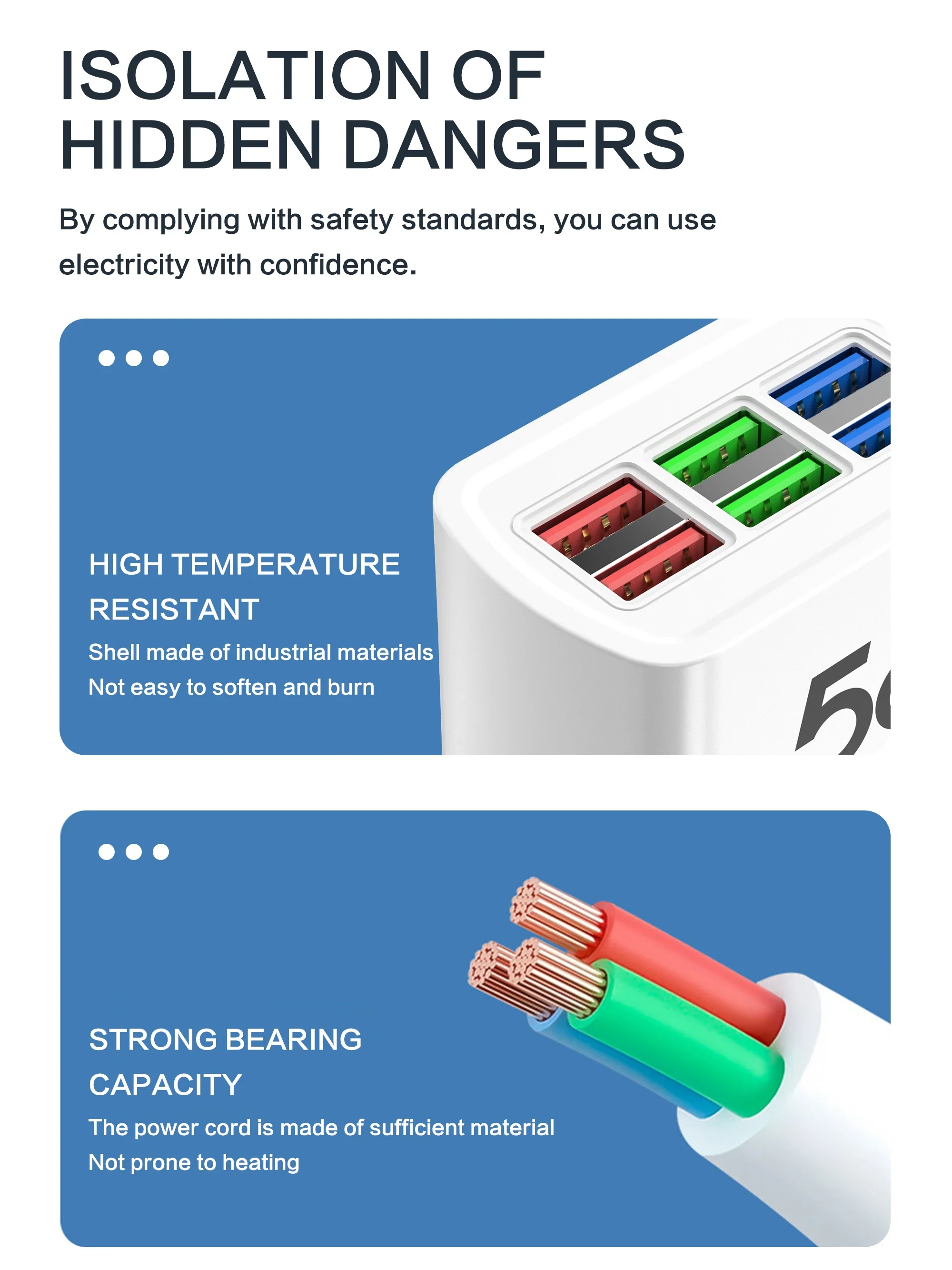 Universal 6 Ports USB Charger Fast Charging Power Strip Adapter Quick Charge Socket For iPhone 15 16 Xiaomi Wall Charger Sockets