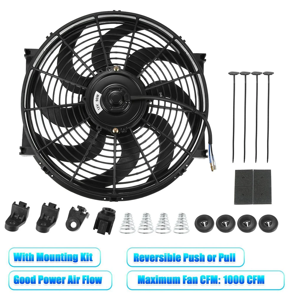 Universal Electric Car Radiator Cooling Fan, High Performance 12v 90w 8 Blades Engine Cooling Fan Radiator, Reversible Push Or Pull With Mounting Kit