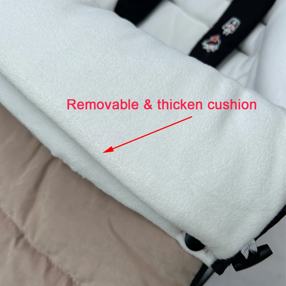 ★Outer Layer: Made of high-density, weather-resistant fabric that effectively blocks wind and cold, keeping your baby warm and dry in harsh conditions.The fabric of the footmuff is also waterproof, fade-resistant, and features a peach-skin-like soft texture.