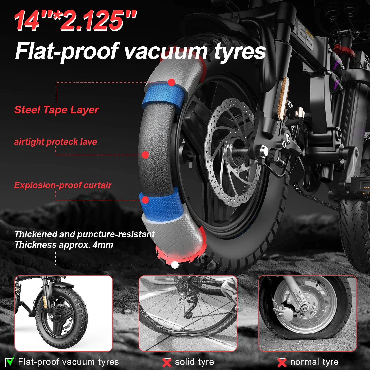 - Wheel Size: 14Inches 350mm