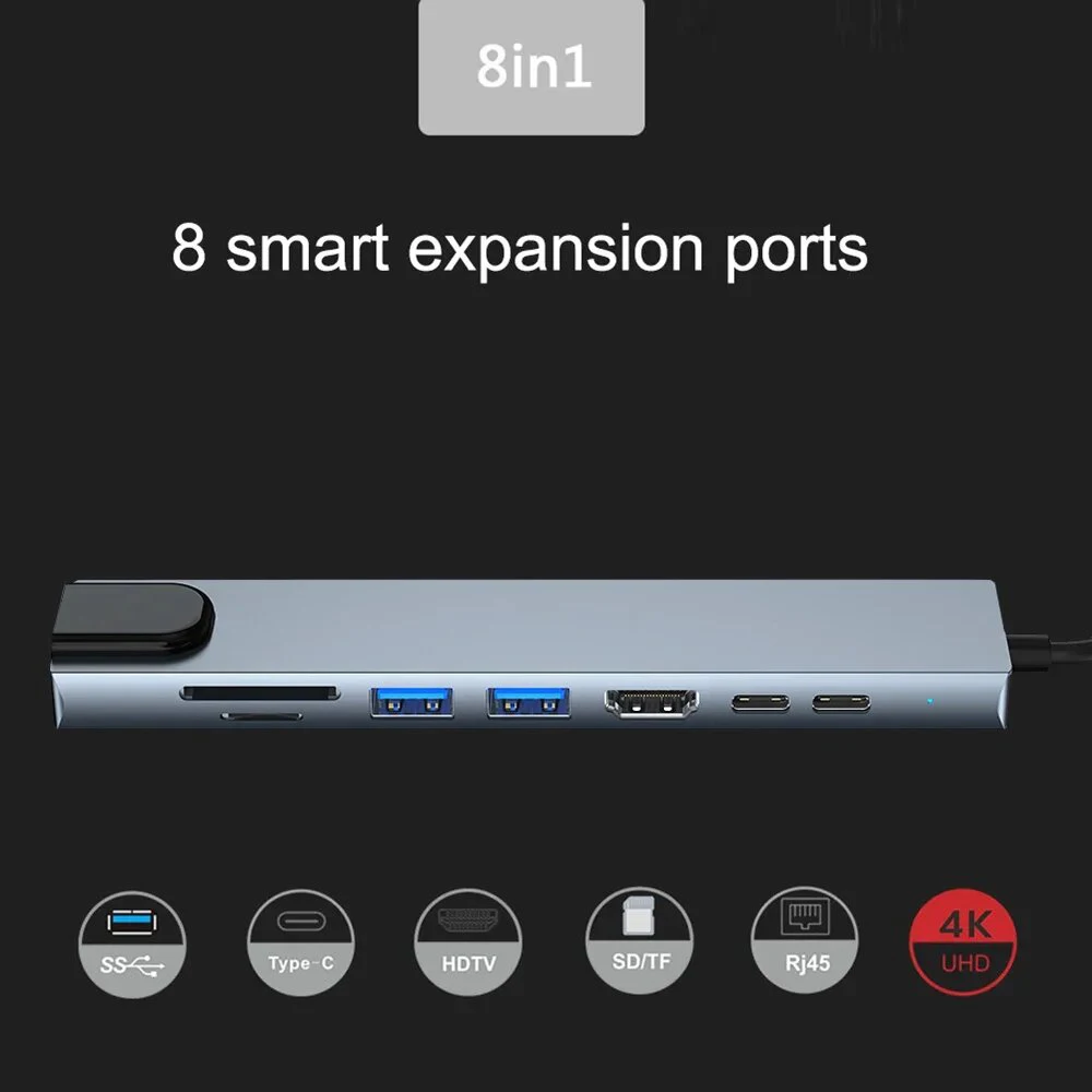 8-in-1 Type-C to hdmi+usb3.0+usb2.0+PD power supply +PD Data +SD+TF+RJ4