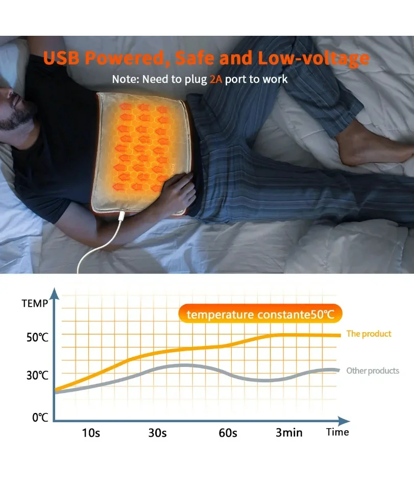 4,Beyond an essential warm artifact, this heating pad can be used to heating different parts of the body, such as hands, back, legs, waist, abdomen, etc.