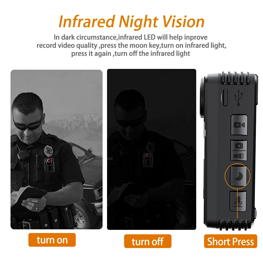 【One key operation & Multi Function】- The body camera supports one click recording of audio, video, and photos without turning on the camera power, allowing for quick recording in case of emergencies. The camera also supports one click flashlight and warning light function when the camera is turned on.
