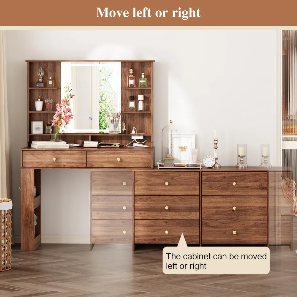 - 【Built-in Power Strip】Upgrade design!This makeup table equipped with a power strip that has 2 standard plug sockets 1 USB ports and 1 T-C with a 4.9-foot power cord,convenient for the LED lights,hairdryer, curling iron, and charge your phone, tablet, or other electronics.
