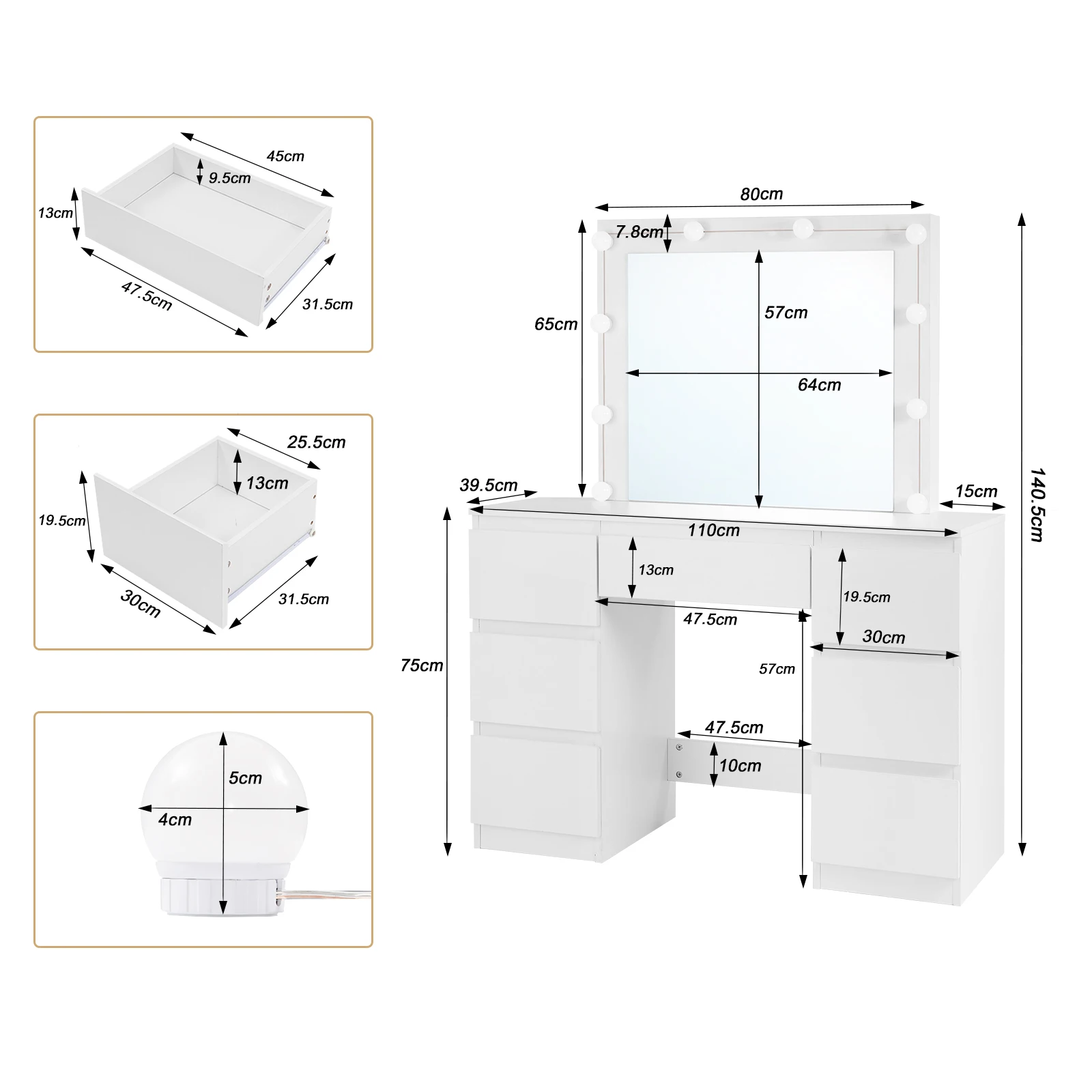Very beautiful dressing table, arrived in just three days, very easy to assemble. Arrived complete. I highly recommend it, the quality is incredible. The lights are very easy to use.
