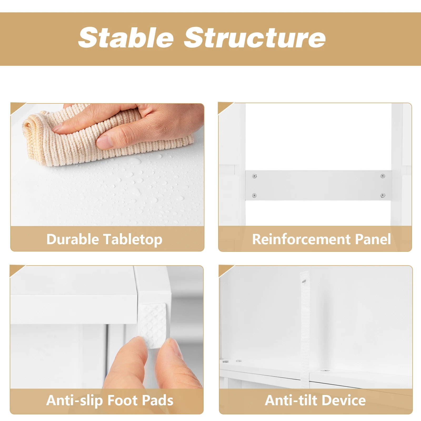 High quality: the dressing table with mirror made of E1 wood material is strong and durable. The well-made table top is abrasion-resistant, water-repellent and easy to clean. The tilt protection provides additional stability