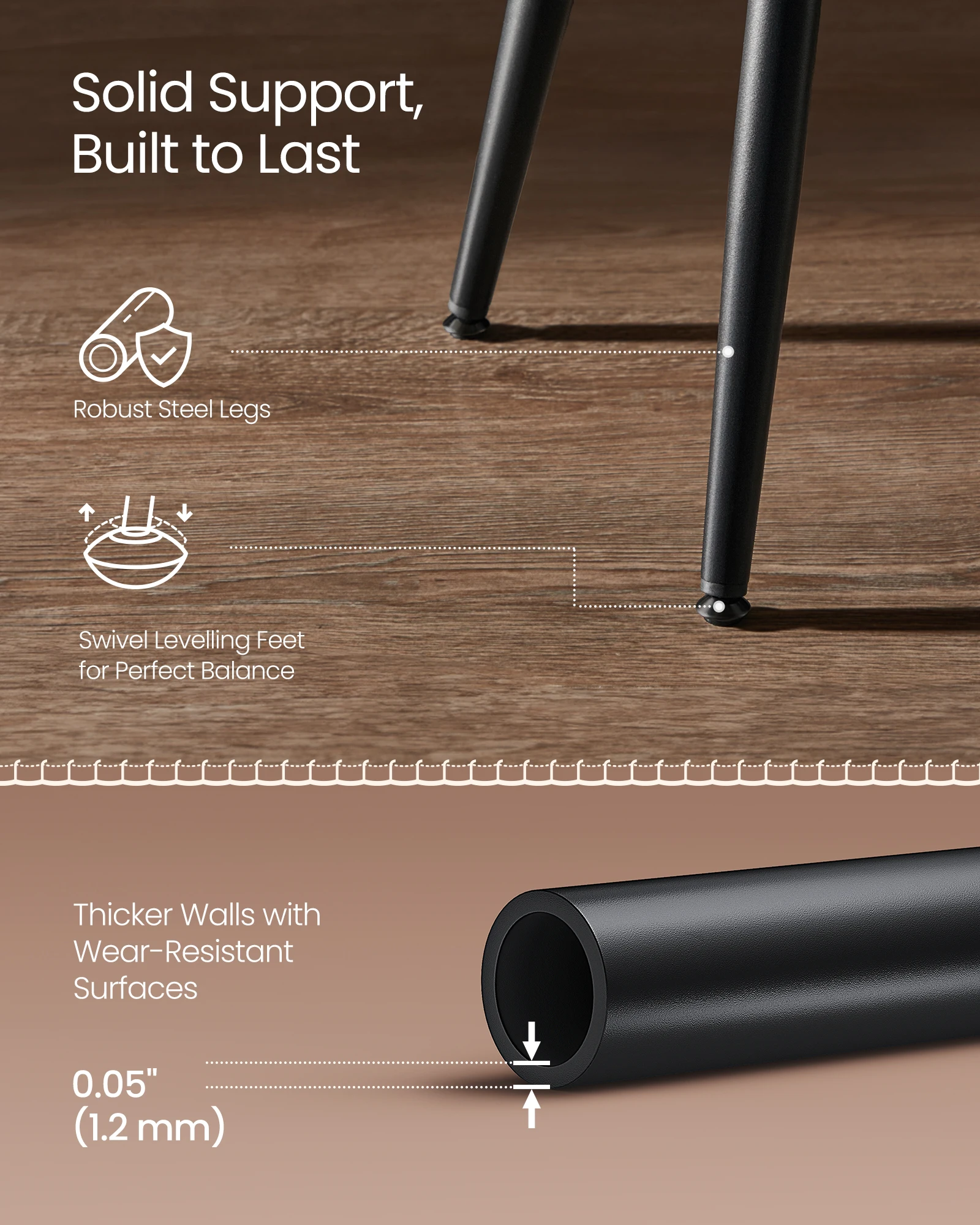 - [Steadfast Stability, Gentle on Floors] With splayed metal legs forming a rock-solid foundation, complemented by swivel levelling feet, these kitchen stools not only offer unwavering stability on uneven surfaces but also promise scratch-free contact