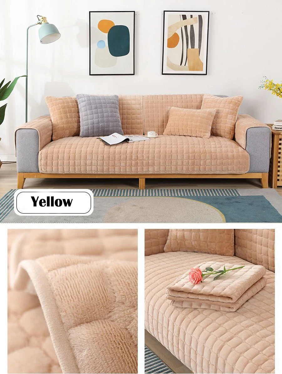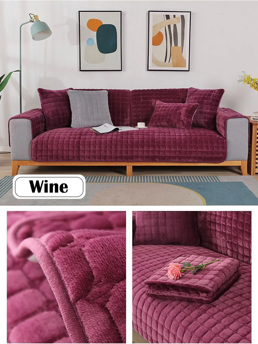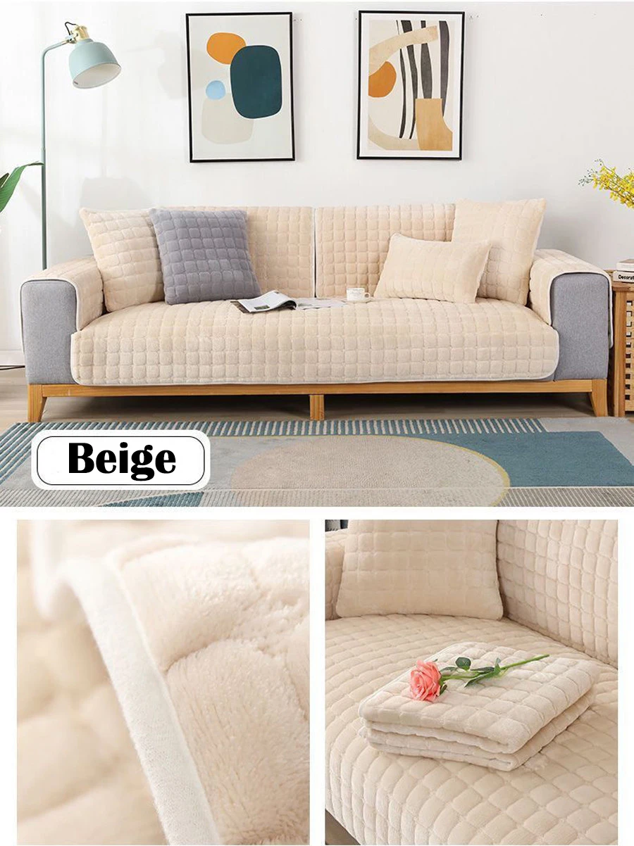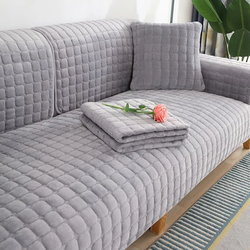 Velvet Sofa Cover Universal Plaid Plush Non-Slip Thickened Living Room Sofa Cover Warm Flannel Sofa Armrest Back Towel