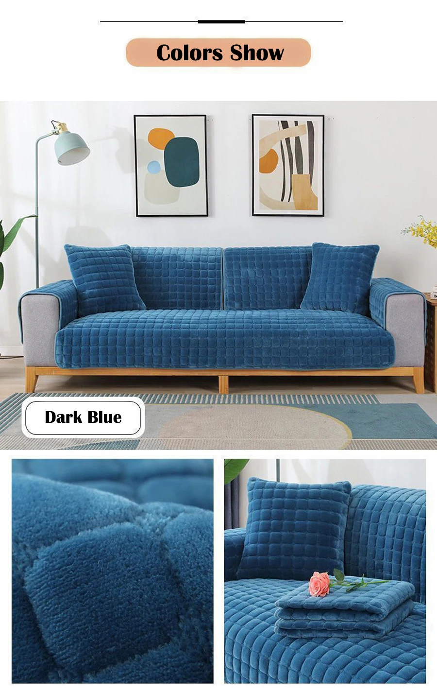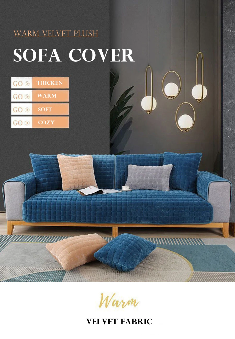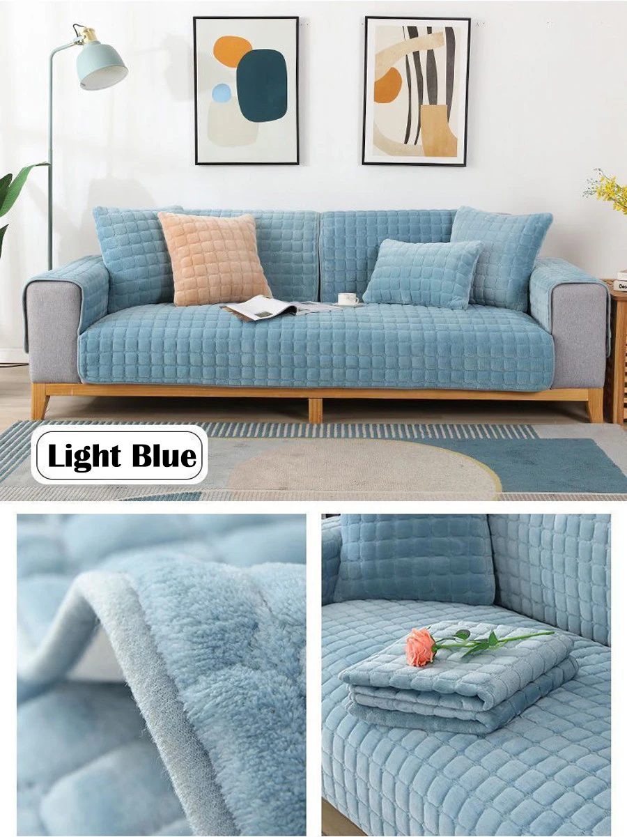 Velvet Sofa Cover Universal Plaid Plush Non-Slip Thickened Living Room Sofa Cover Warm Flannel Sofa Armrest Back Towel