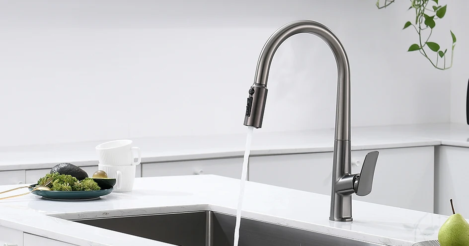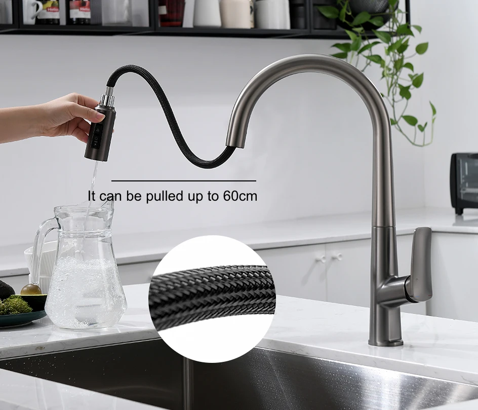 - Kitchen Faucet Color: Grey Pull Out Kitchen Faucet