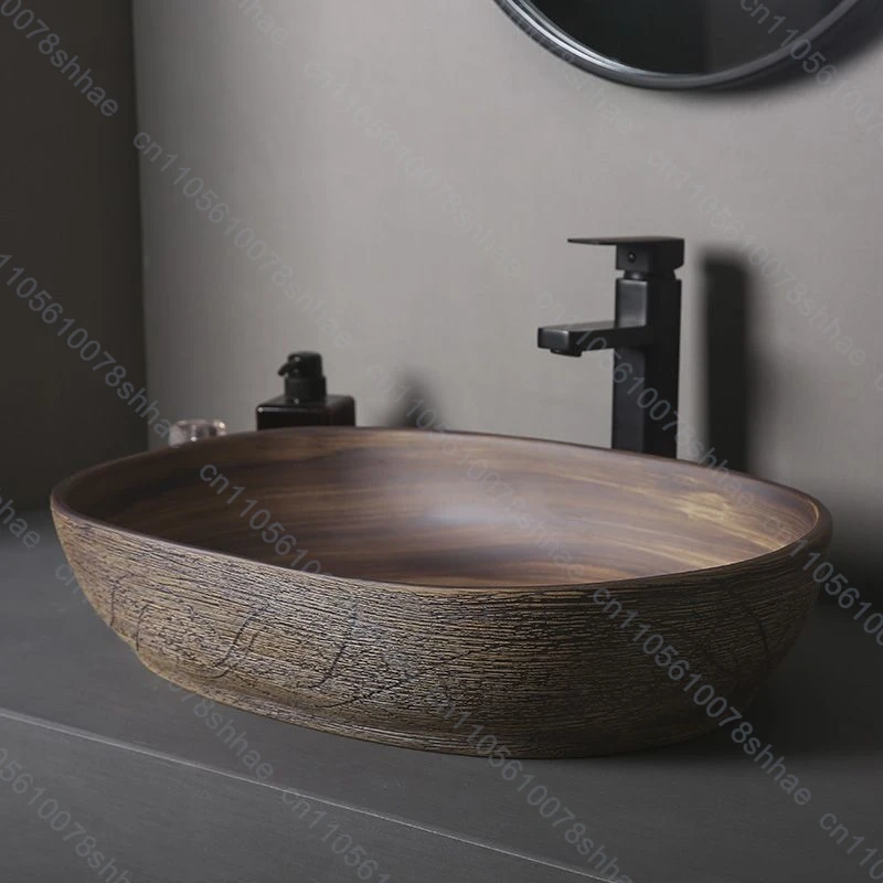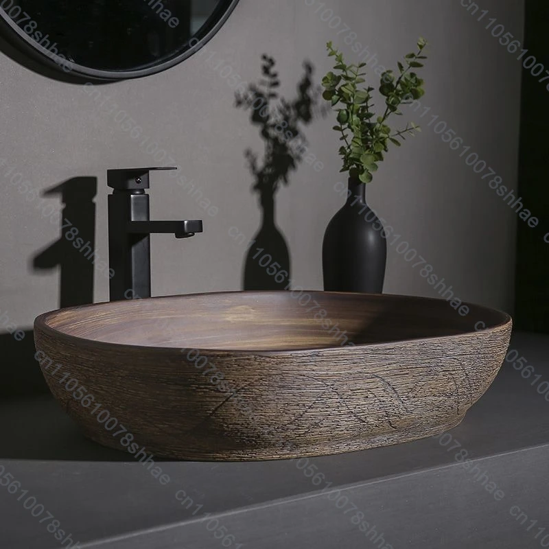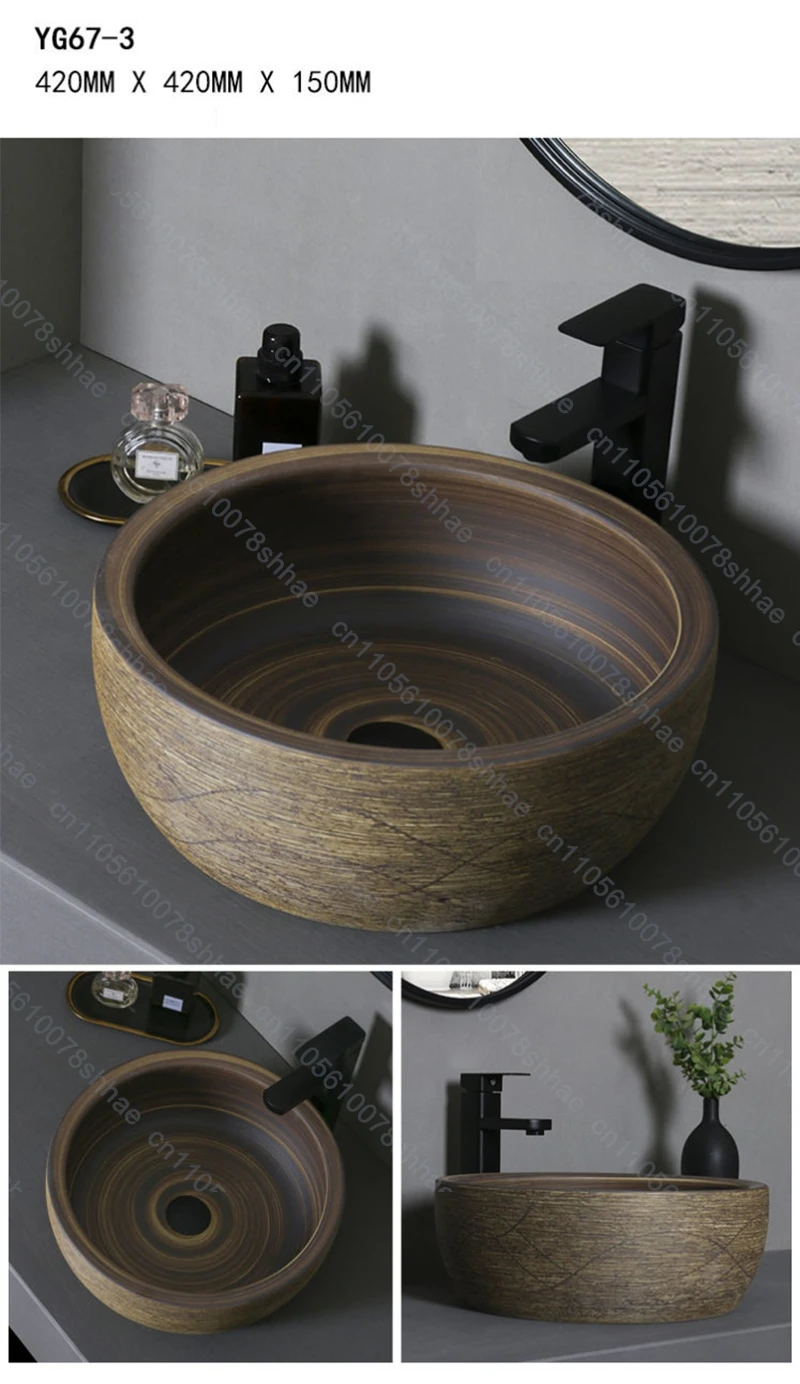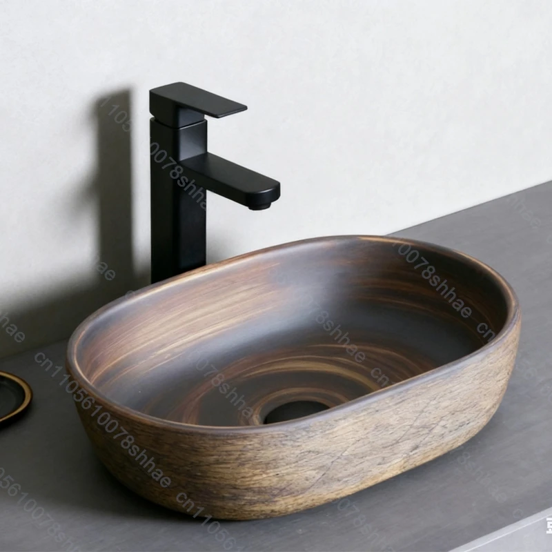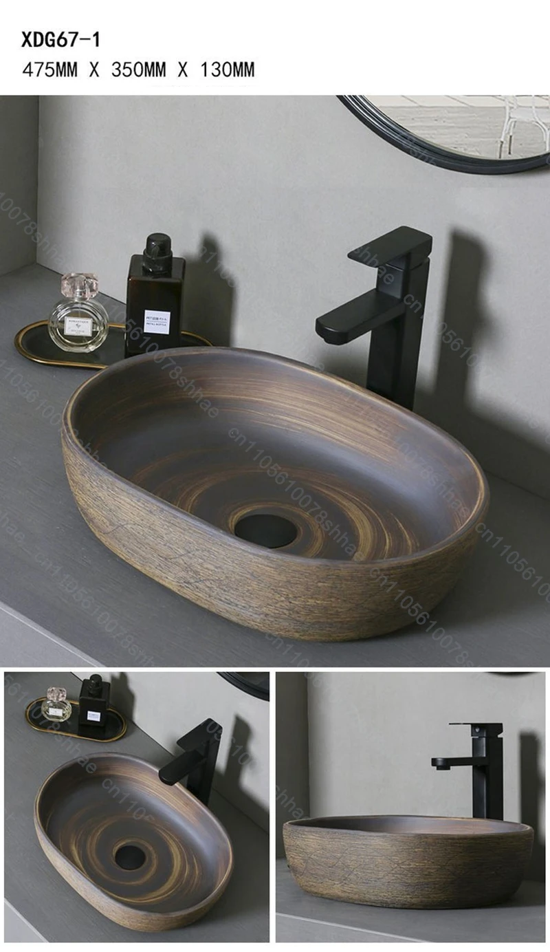 Vintage Ceramic Vessel Sink Bathroom Art Basin Above Counter Wash Bowl for Vanity Top and Home Decoration Countertop Wash Basin