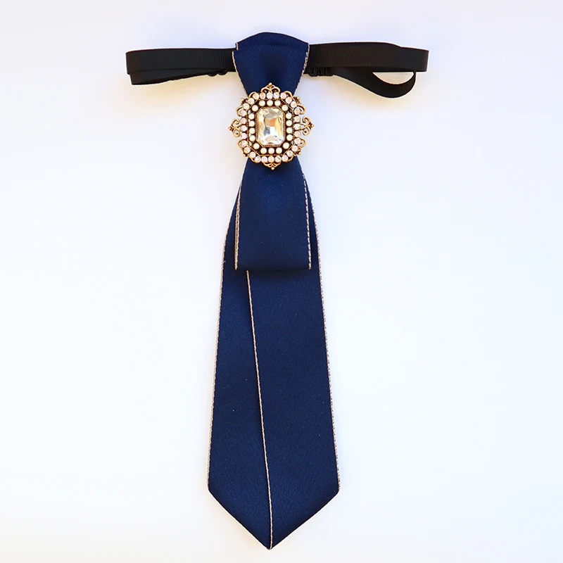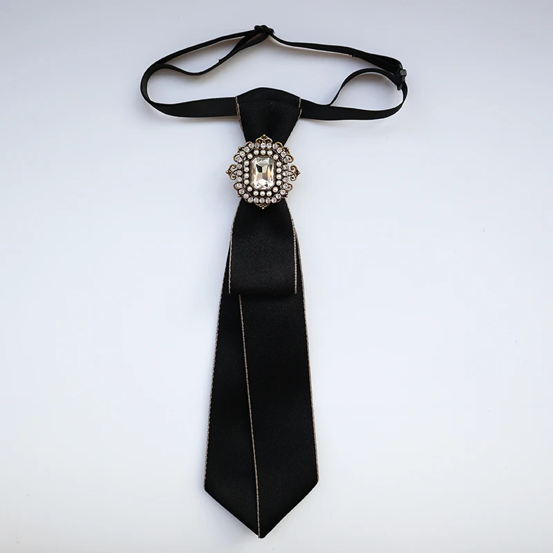 Vintage Fabric Bow Tie for Women Crystal Fashion College Style Necktie Shirt Collar School Uniform Tie Jewelry Accessories