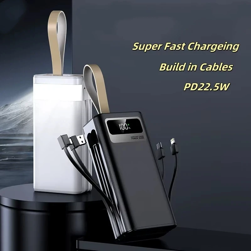 VIVO 500000mAh Power Bank Built in 4 Cables Large Capacity Fast Charging Digital Display External Battery for iPhone Samsung