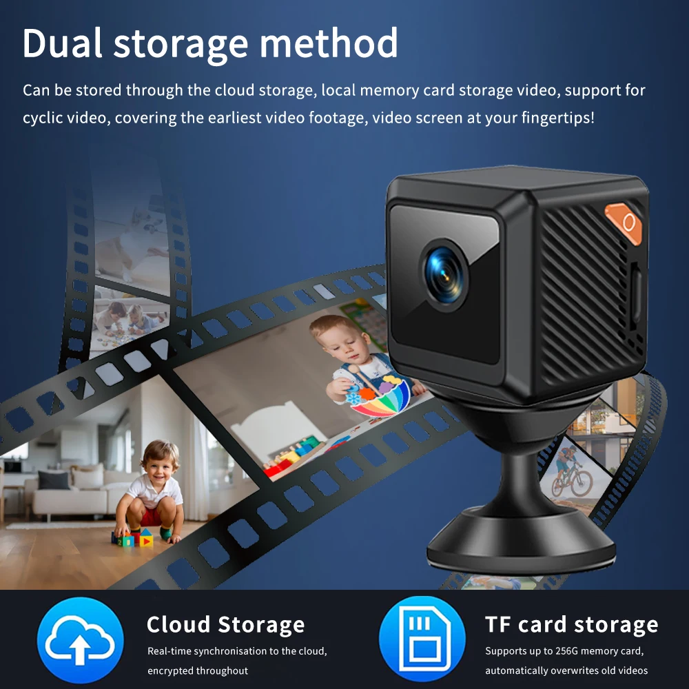 W02 Mini Security Camera 1080P HD, 140° Wide View, 1-Second Bluetooth Setup, 600mAh Rechargeable, 5M IR Night Vision, Motion Detection Alerts, Cloud/SD Storage