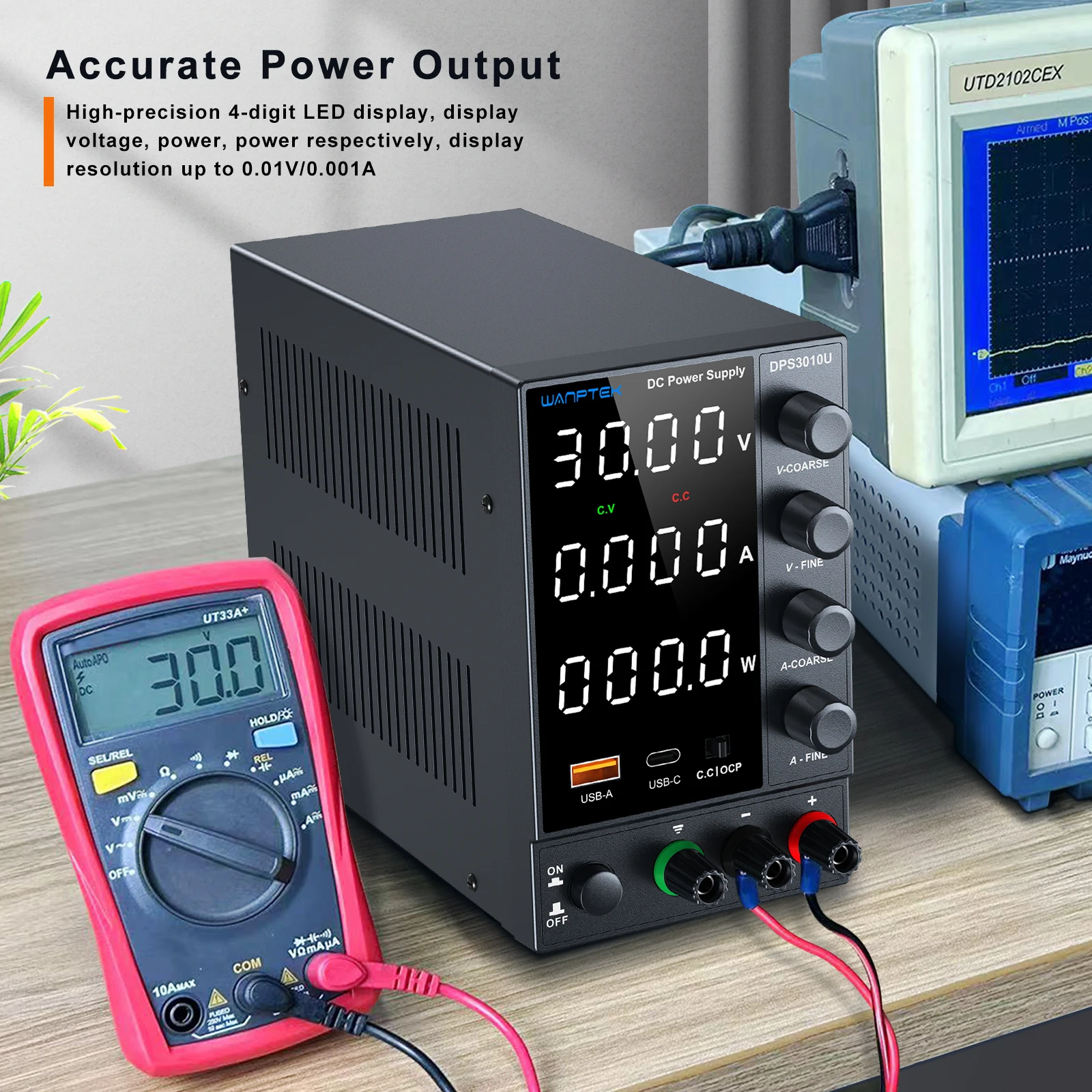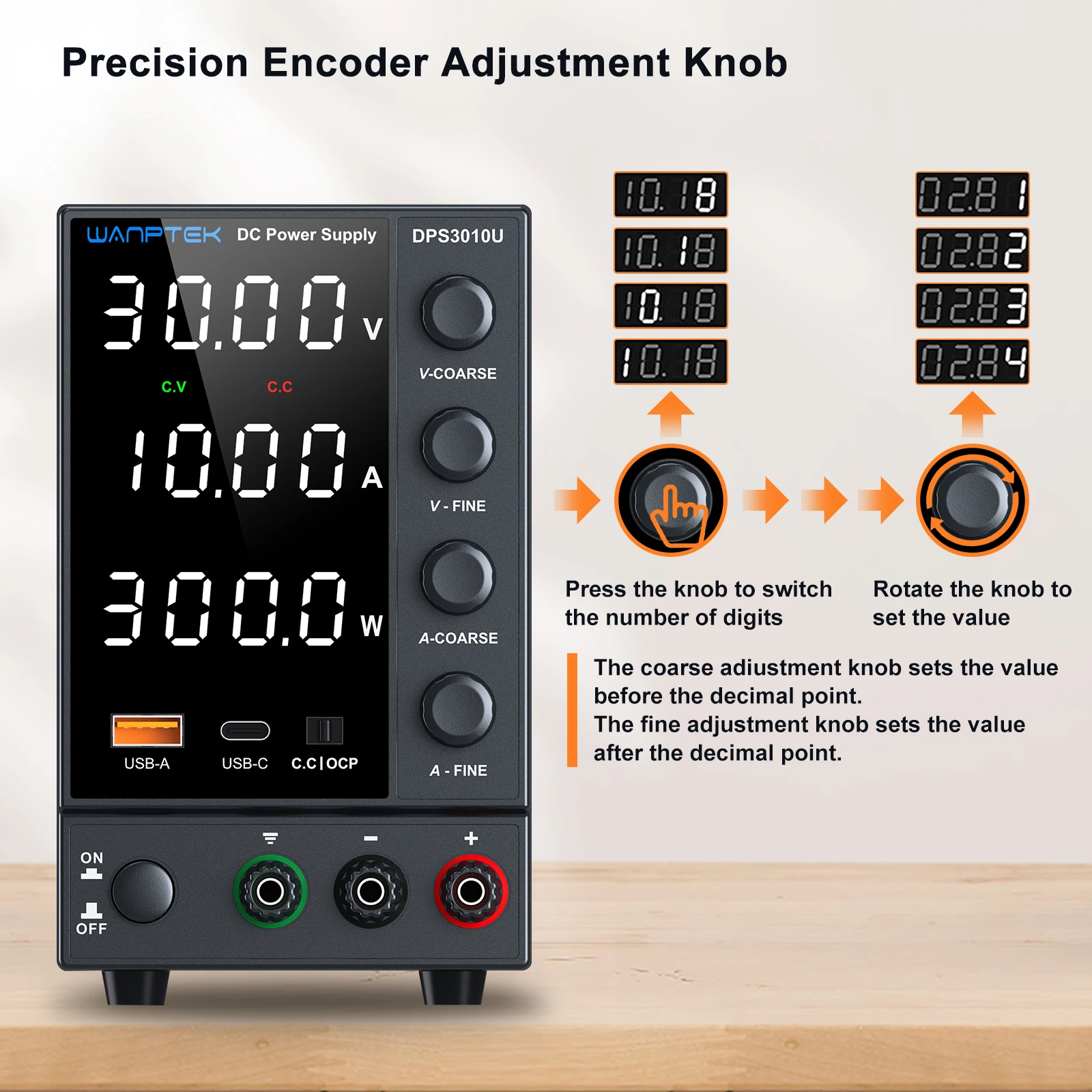 2.DPS3010U with USB-A/Type-c Encoder Adjustment DC power supply 30V10A