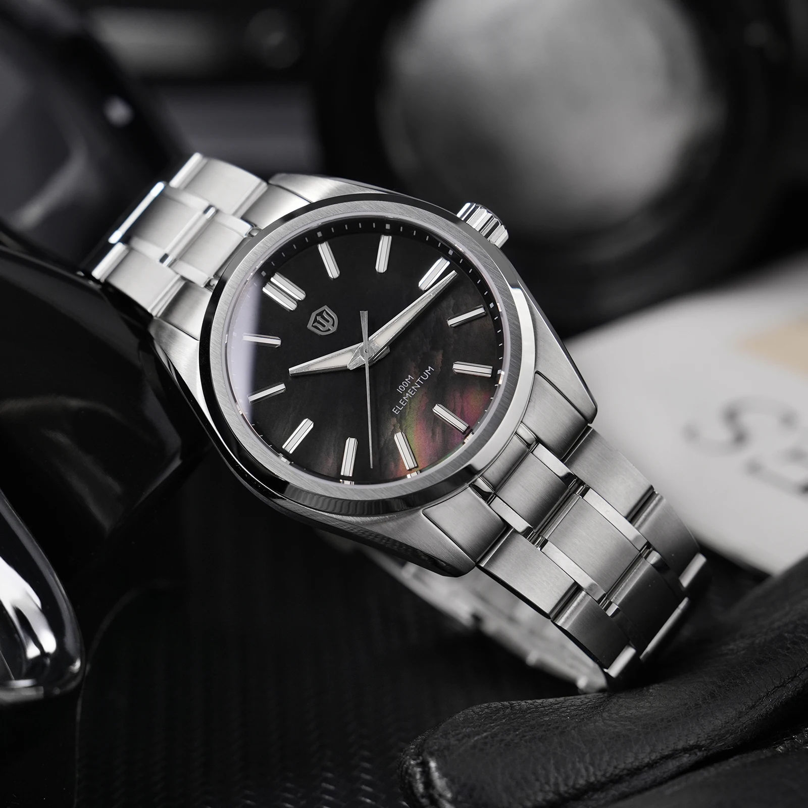 I didn’t see photos of the white mother-of-pearl model, so I’m attaching one. I really liked this model because the shine of the mother-of-pearl is subtle only in backlight, so it can even be worn with formal attire.