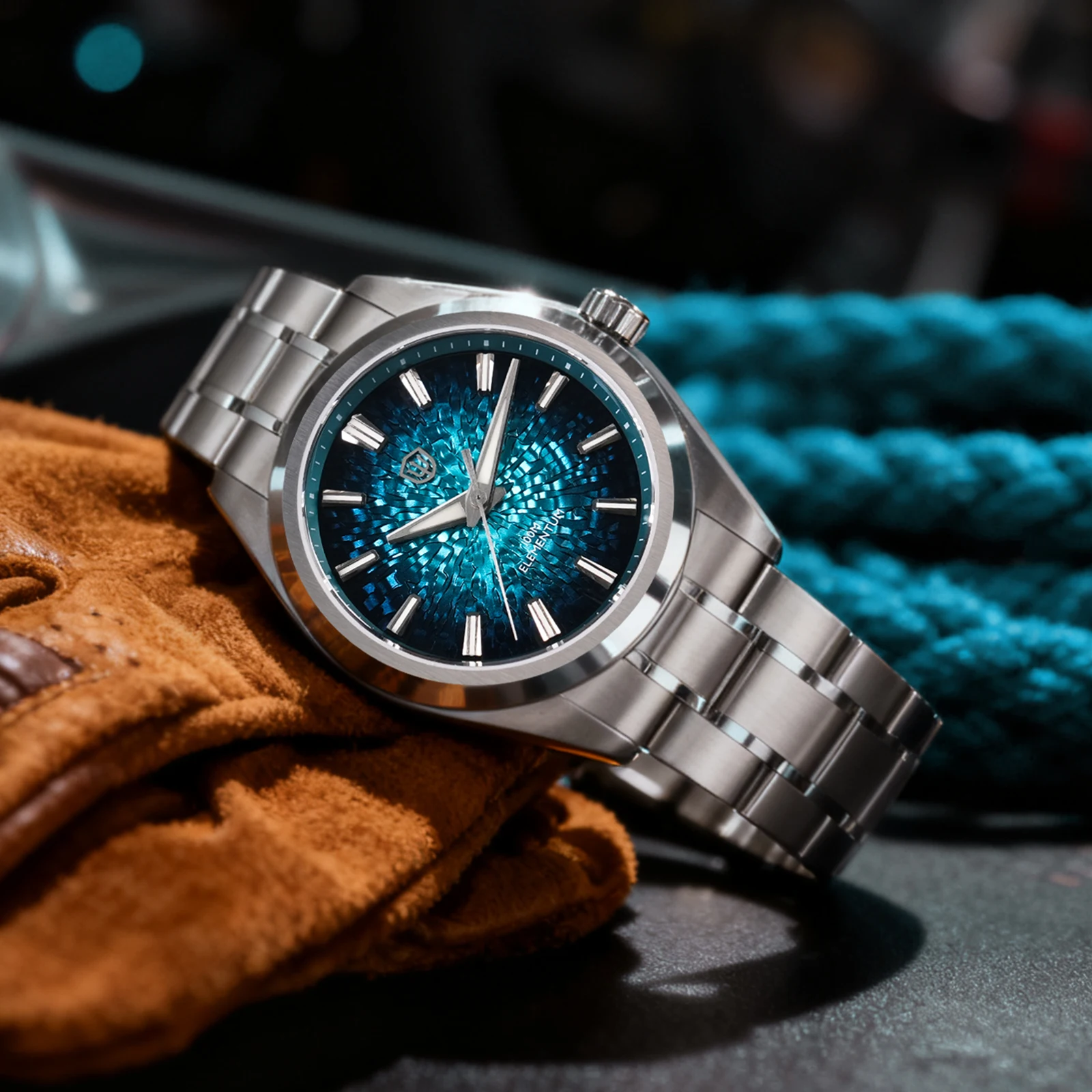Gorgeous dial. Sapphire, 316 steel,, nice bracelet… great value for what you are getting. I am very happy with this watch. I would not hesitate buying another (similar) one… possibly blue next time. I have an 8 inch wrist and the watch doesn’t seem too small.