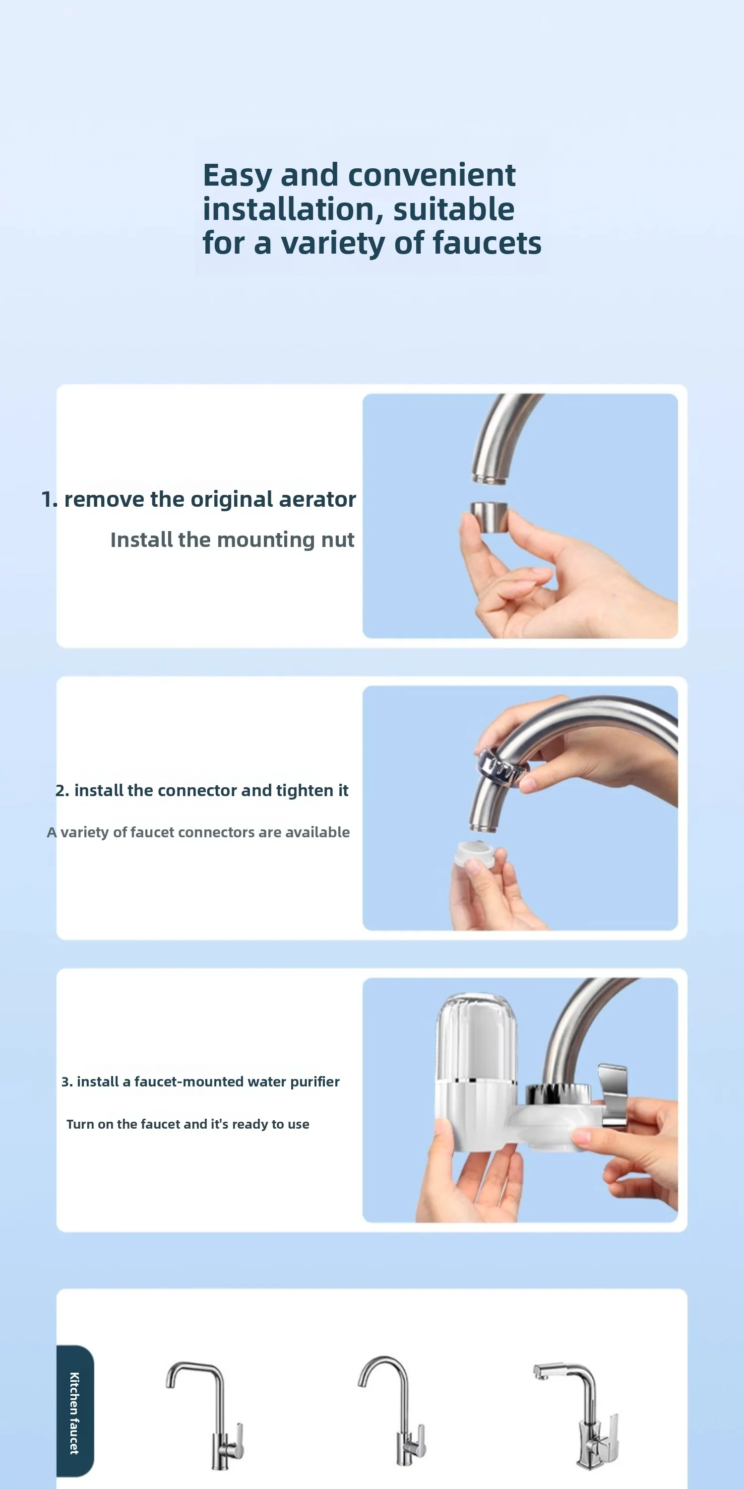 | Color | C6 faucet, screen displays M10, Stainless steel C19 |