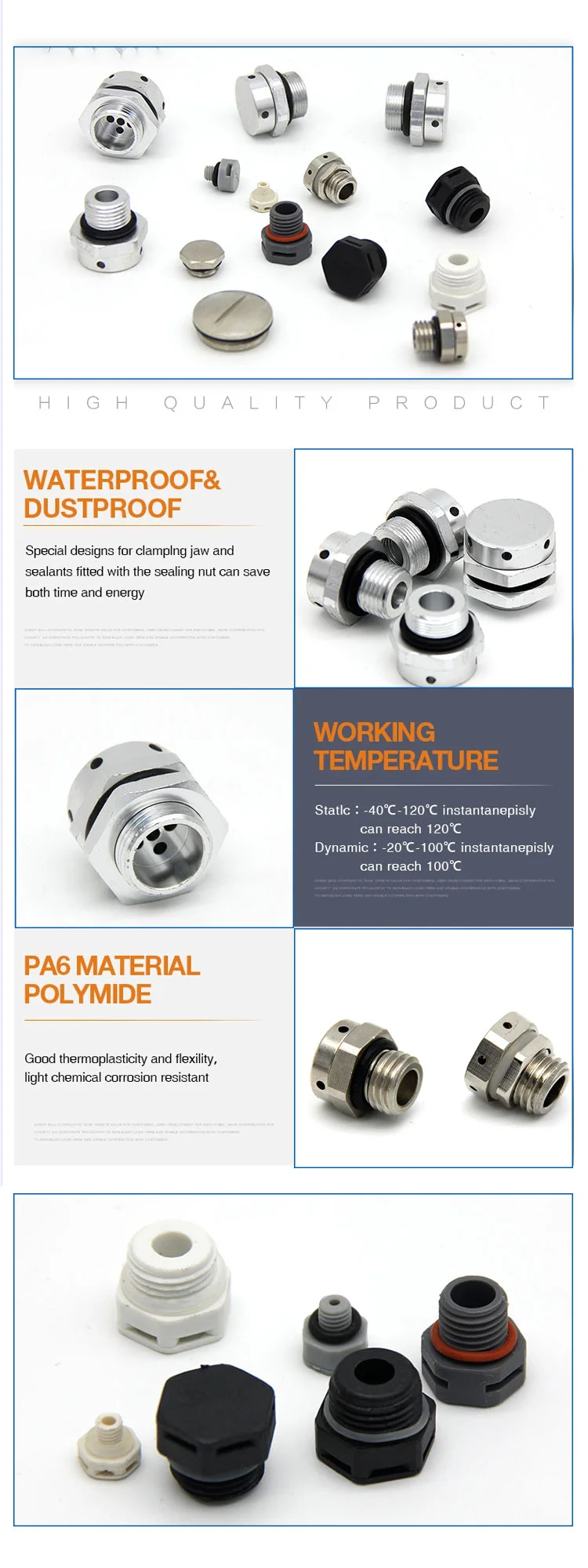 | Color | M10x1.5 50pcs, M12x1.5 50pcs, M16x1.5 30pcs, M20x1.5 20pcs, M5x0.8 100pcs, M6x1.0 100pcs, M8x1.0 50pcs |